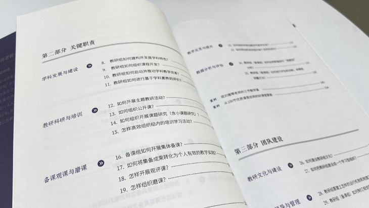 又如,针对“教研组长(备课组长)怎样上下左右沟通,确保关系通畅?”,提炼出“巧用工具,活用上下,摸爬滚打,多快好省”的16字口诀,旨在抓住关键,先理顺关系,再处理问题。