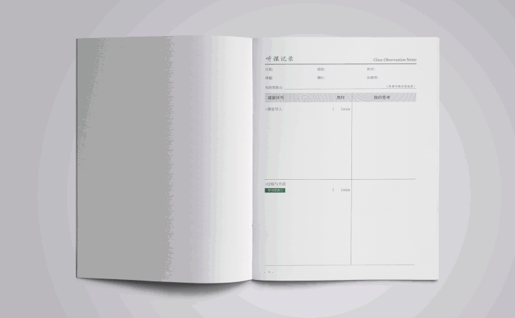 备课、听课、评课等皆是教研工作的重要环节。备课本、听课笔记本采用精心设计的结构化模板,无论在备课环节还是听评课中,以一堂课的“目标、任务、活动、评价”四大元素为核心,形成一堂课清晰的结构脉络,搭建学习支架,铺设学习路径,让深度学习在课堂发生,助力教师逐步搭建独具个性特色的课堂模型。