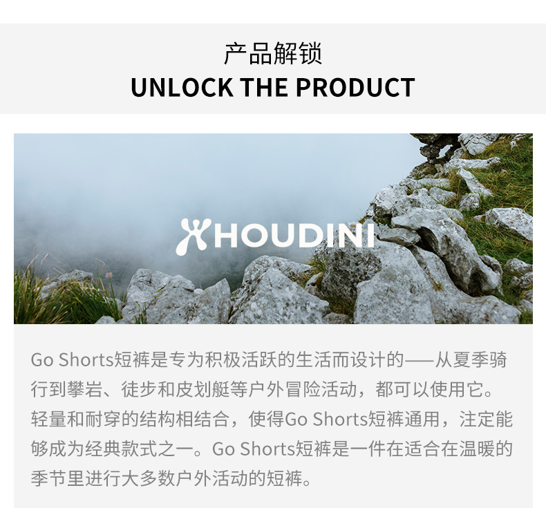 HOUDINI胡丁尼 Go Shorts 走起 男户外轻薄弹力宽松休闲徒步短裤 860029