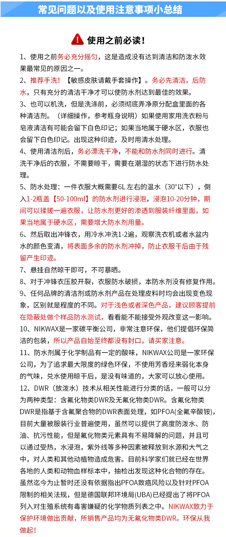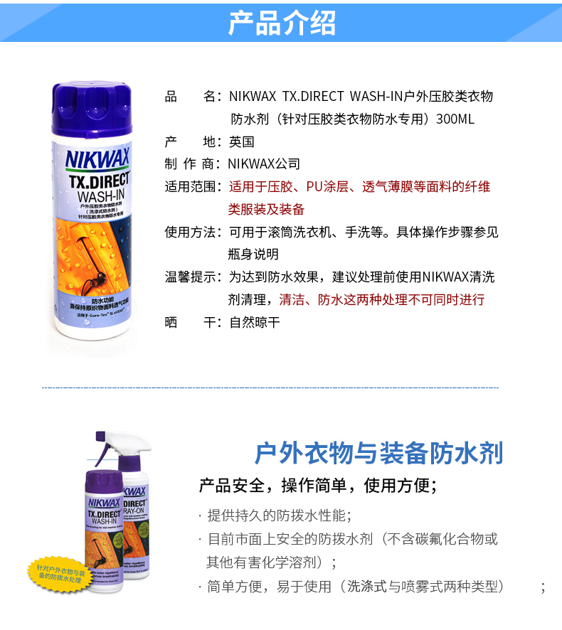 NIKWAX 251 功能性服装洗涤式防水剂 300ML