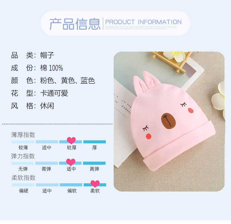 【纯棉面料 告别红疹】婴儿纯棉帽子秋冬新款新生儿纯棉无骨胎帽保暖宝宝双层卡通儿童帽