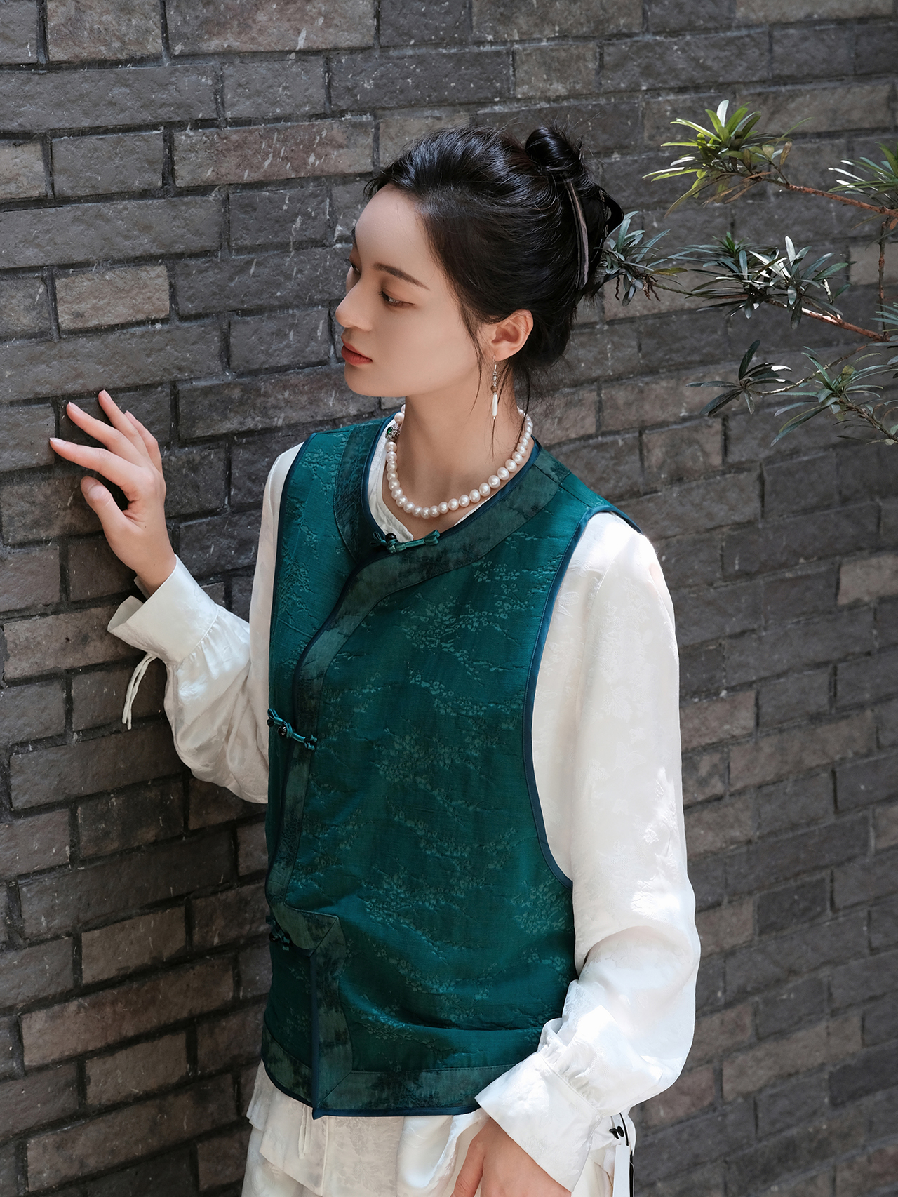 盛唐婧 |真丝香云纱琵琶襟马甲-绿色
