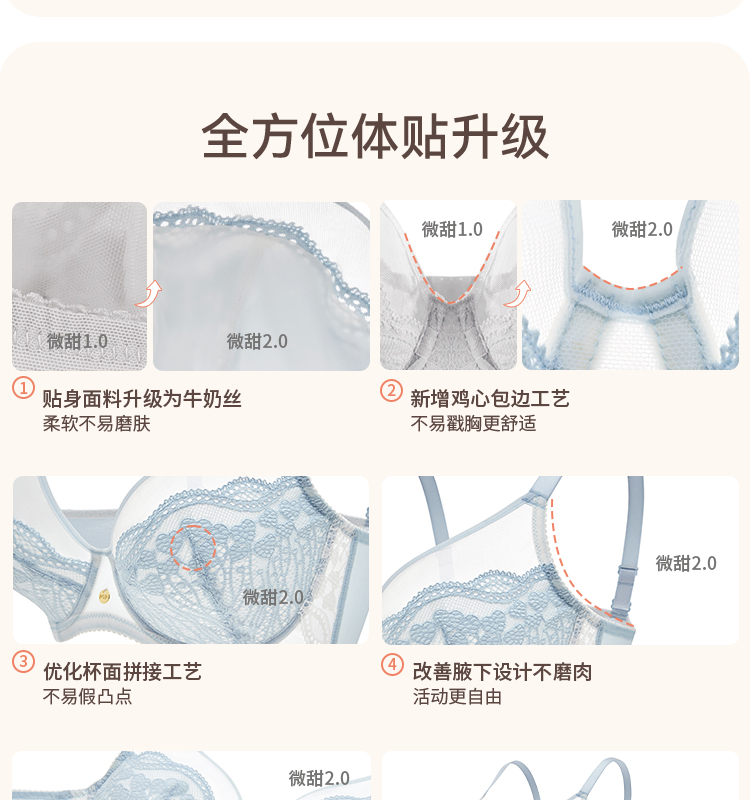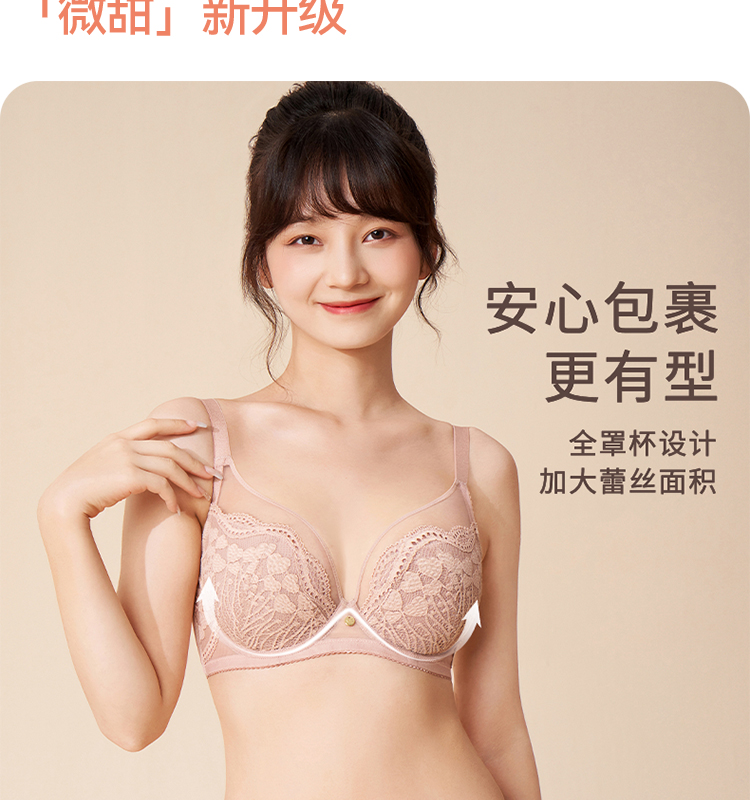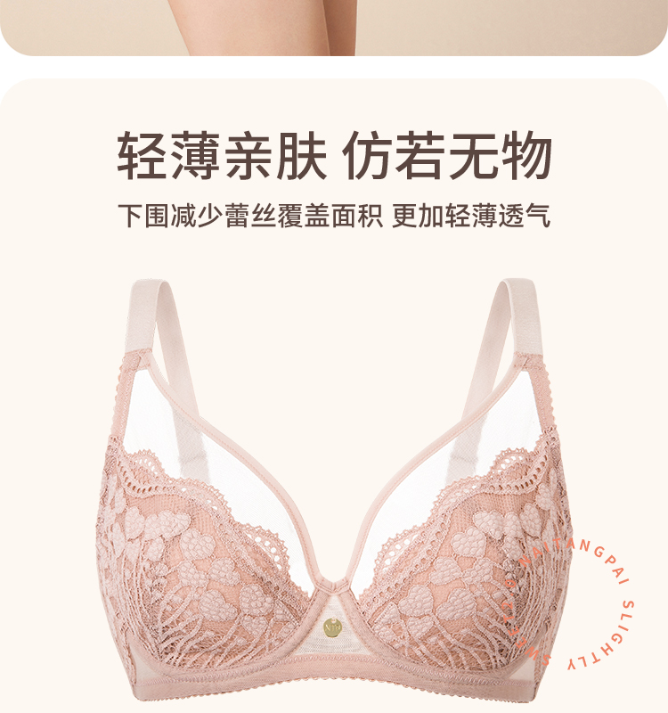 奶糖派大杯微甜全罩杯大胸显小文胸超薄蕾丝防凸点大码显瘦内衣女