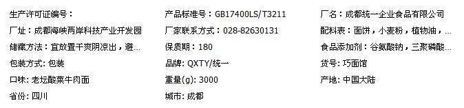 统一 巧面馆 袋装 老坛酸菜牛肉面 1袋