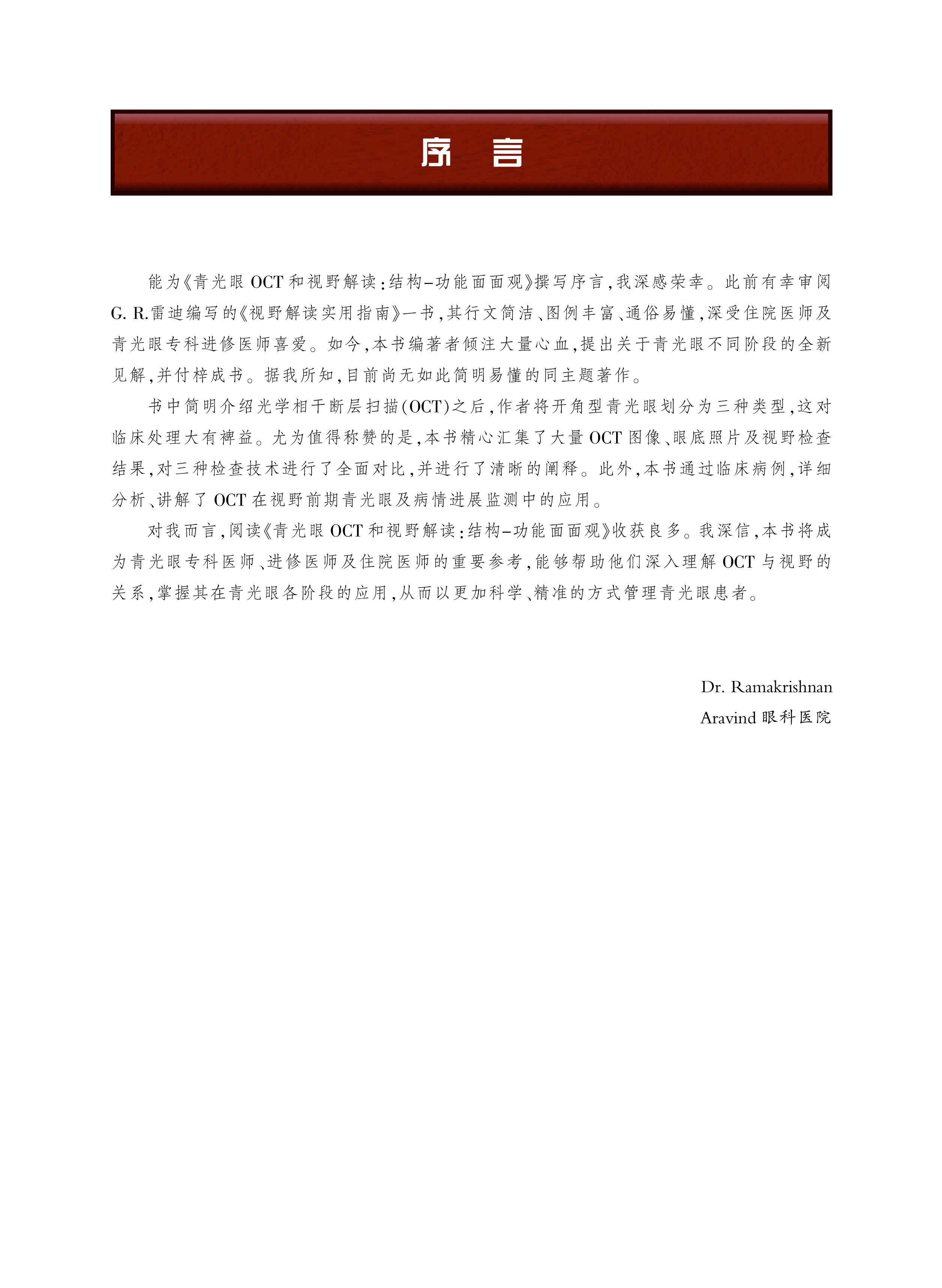 l 直观性:提供数百幅高清彩图,包含大量OCT图像、眼底照片及视野检查结果,并且展示对OCT报告厚度数值的解读及其在青光眼诊疗中的应用等。