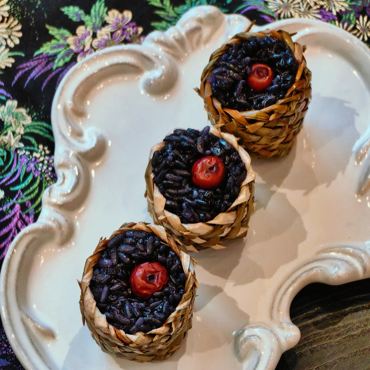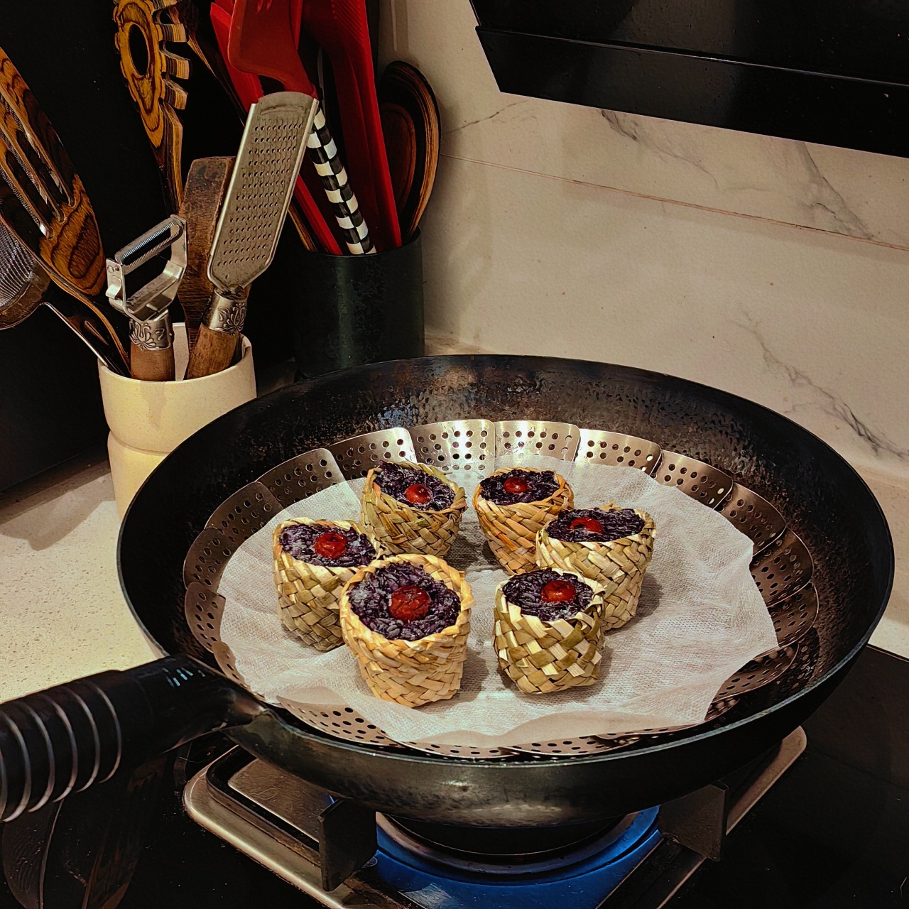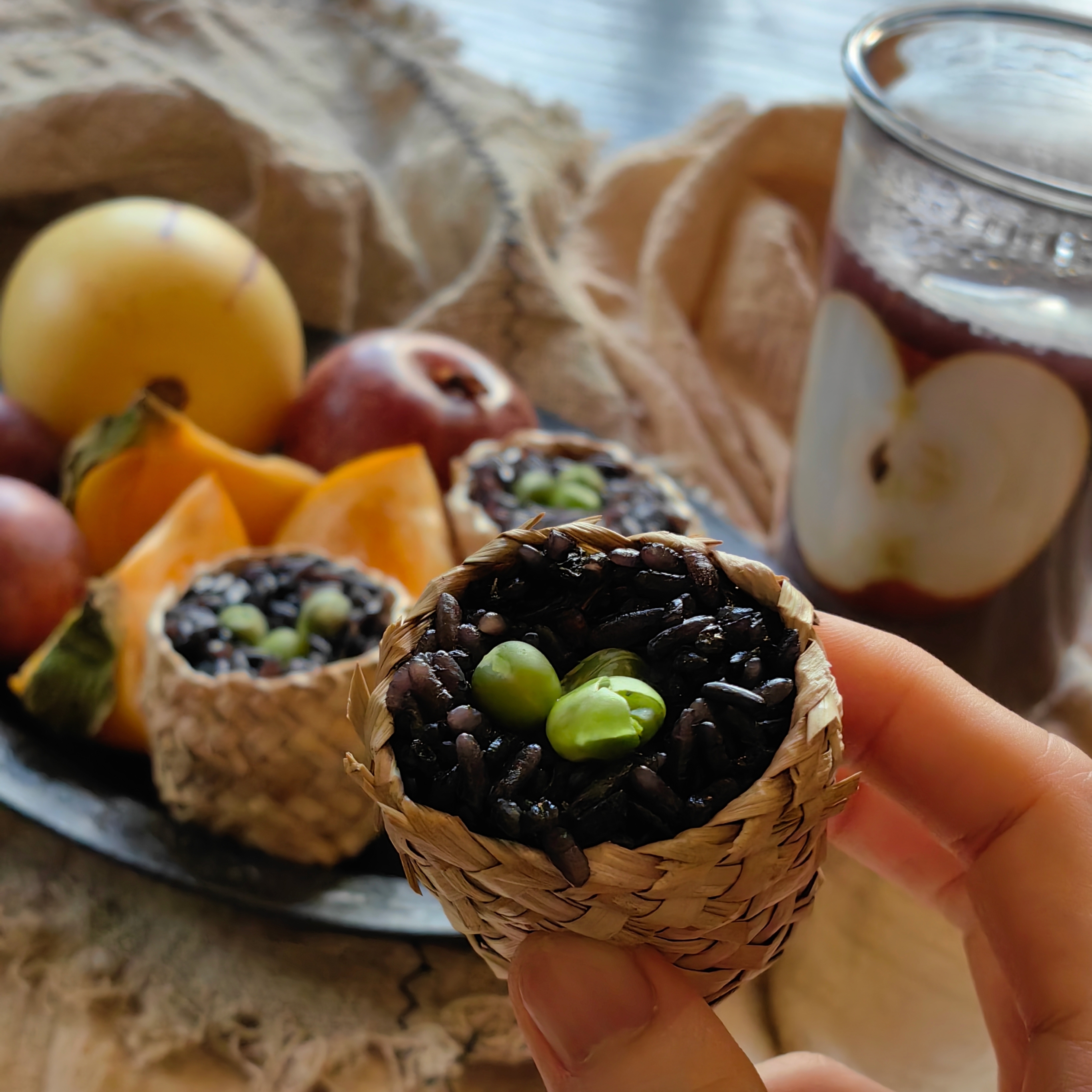 小篓装的乌米饭真的是太可可爱爱了!想吃时,从冰箱取出,直接上锅蒸12分钟就行。出锅的乌米饭,香软甜糯,乌树叶的清香在口中久久不散,很是好吃。而且这小篓,也太有仪式感,怎么摆盘都好好看。。。天气炎热时,还可以配上芒果和椰汁,更是清爽好吃!