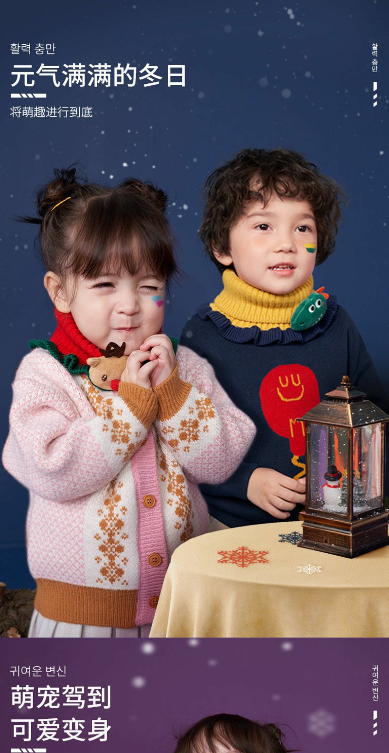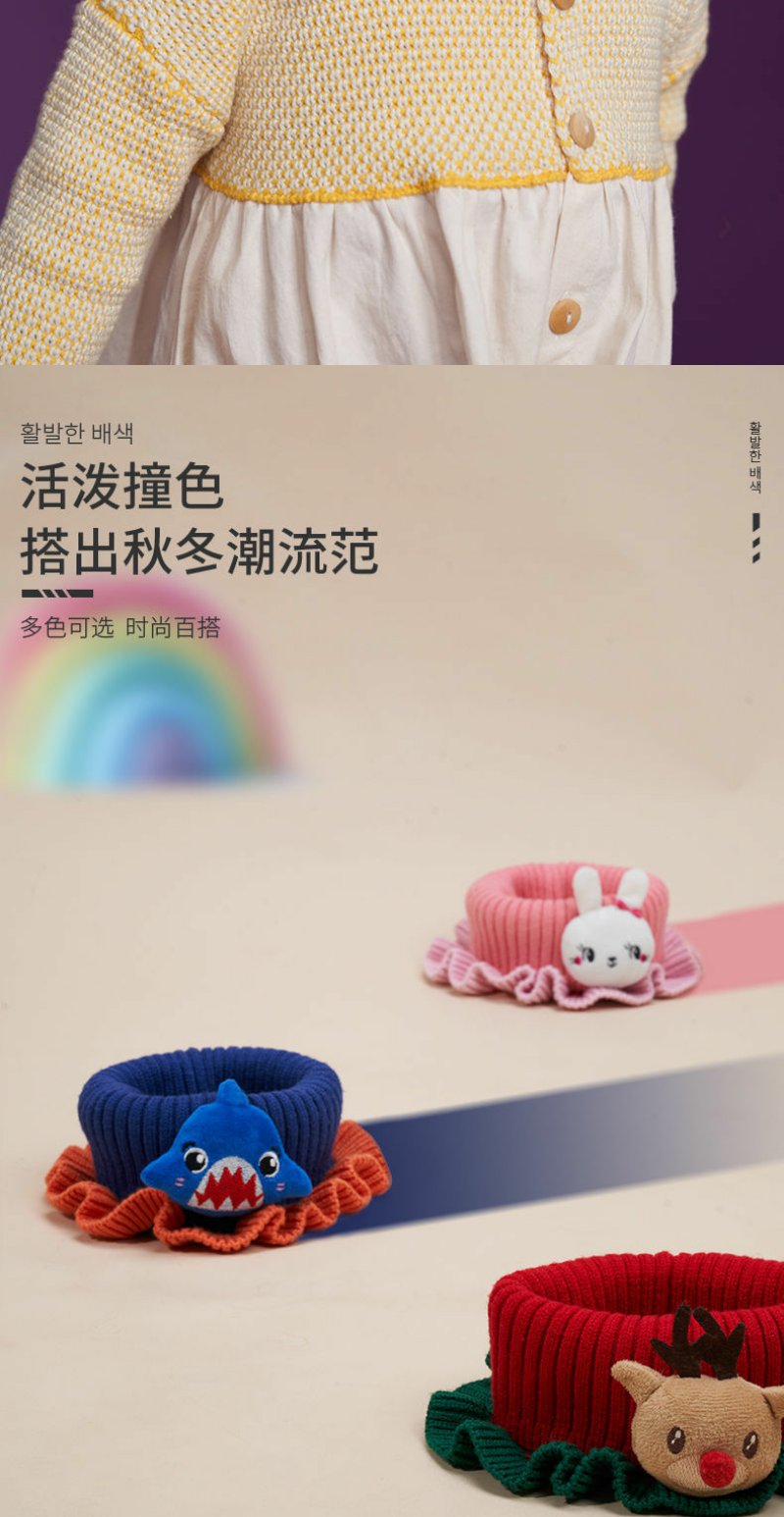 儿童圣诞卡通针织围脖宝宝春秋冬季保暖毛线针织围巾儿童套头围脖
