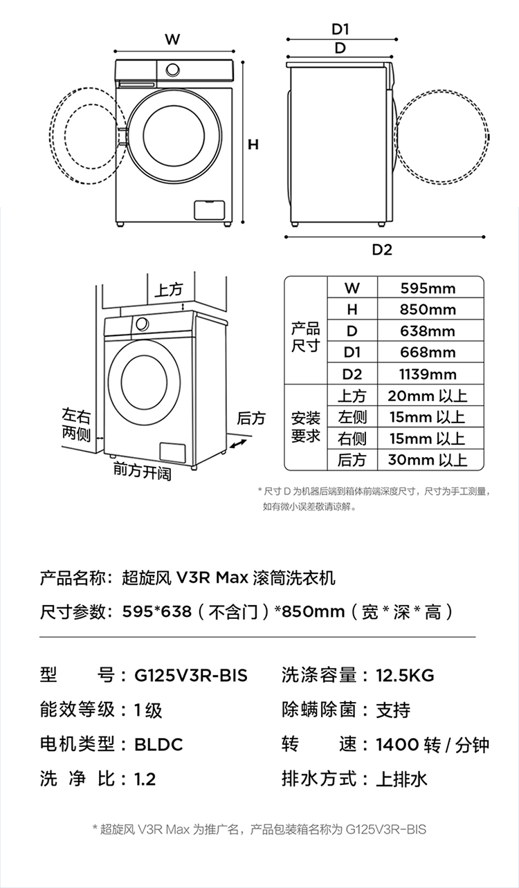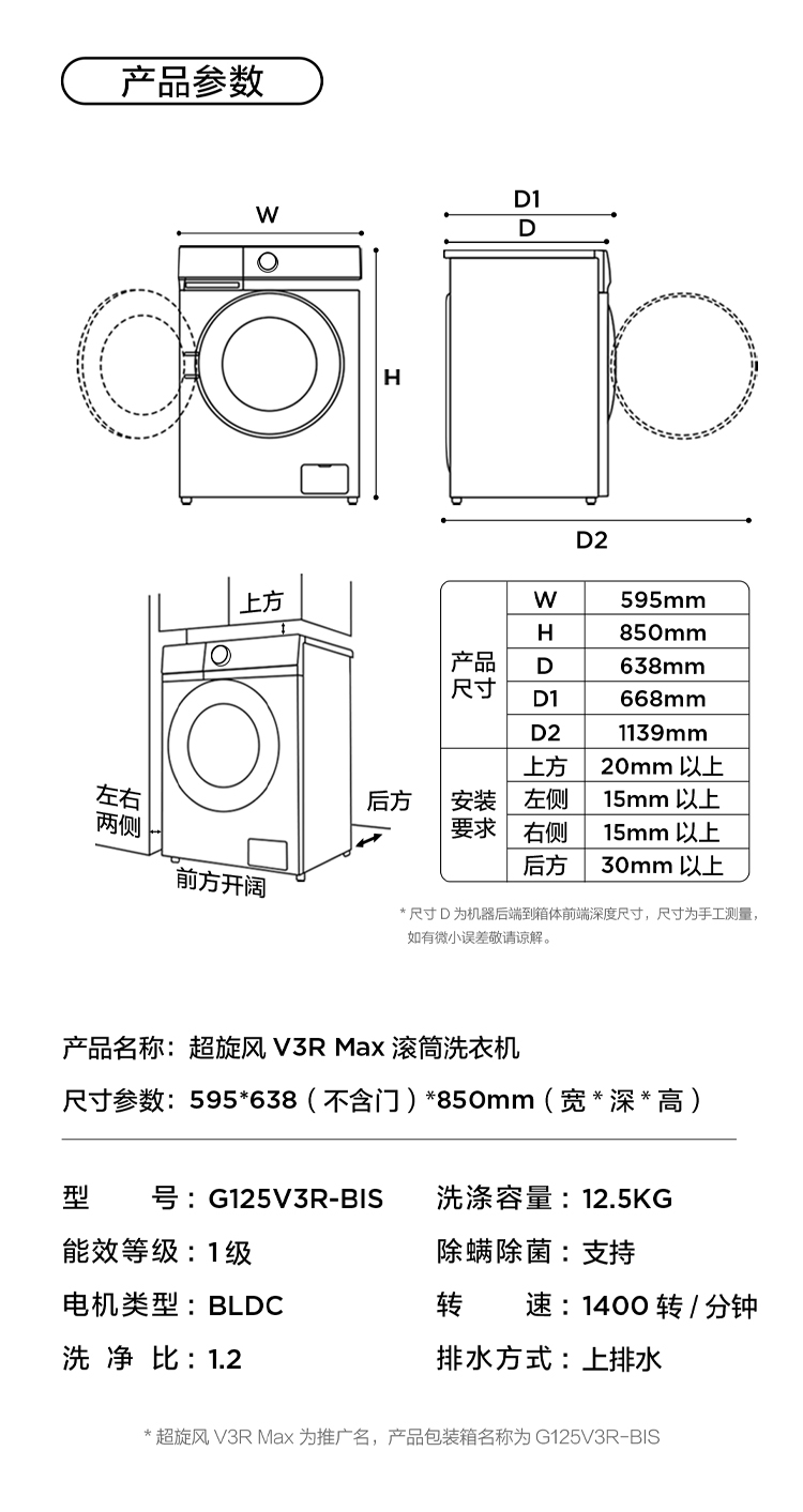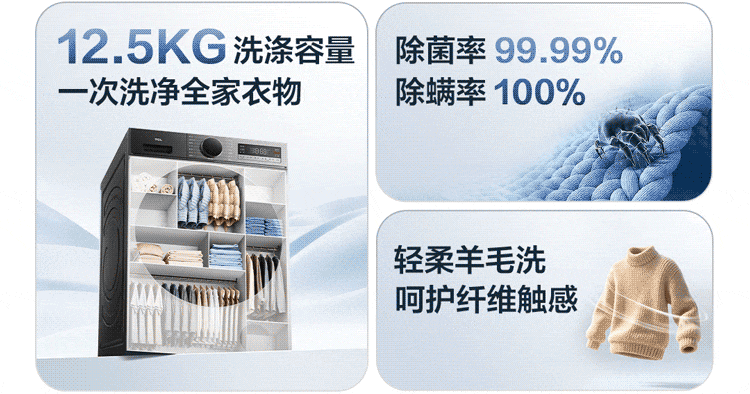 【新品上市】TCL超旋风V3R Max12.5公斤大容量变频滚筒智能投放 G125V3R-BIS