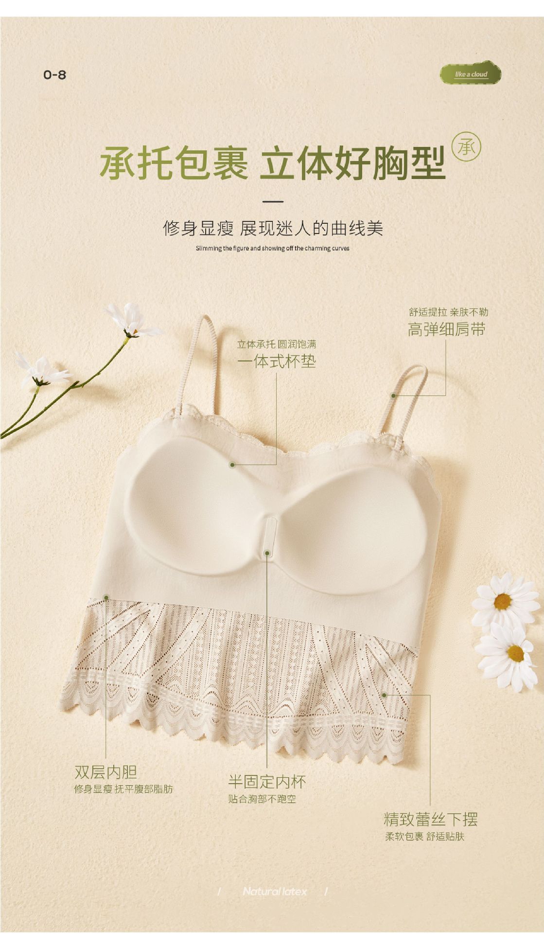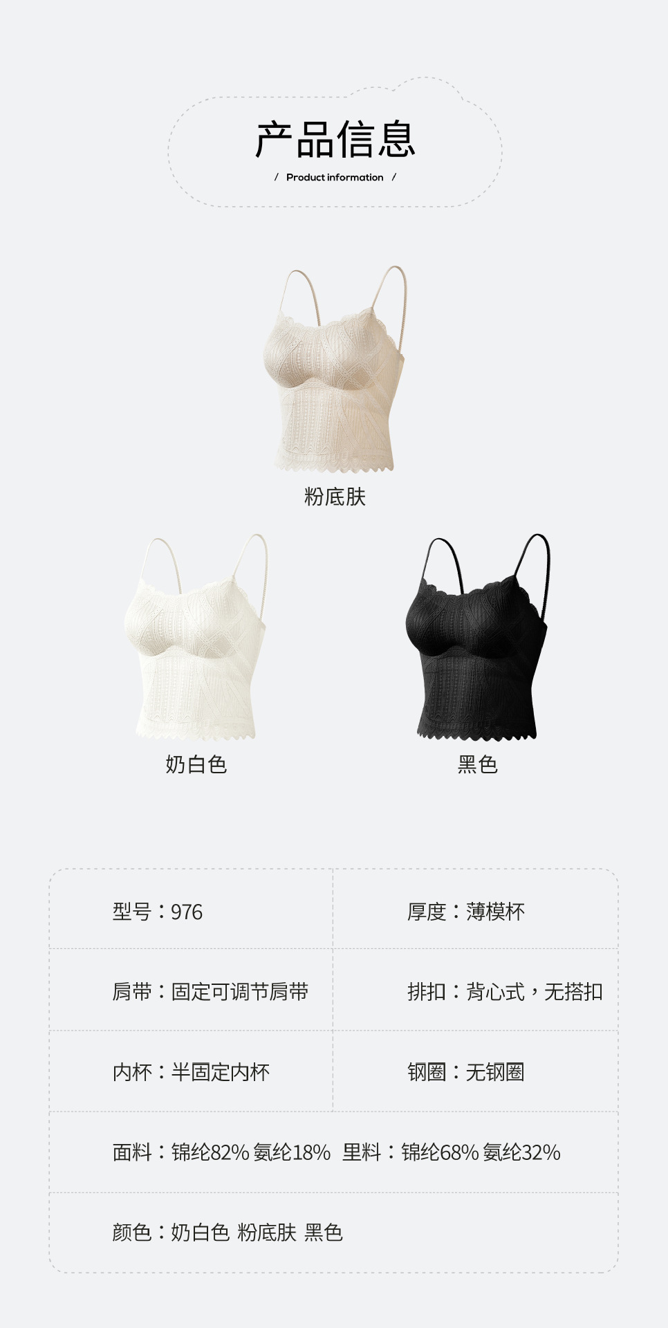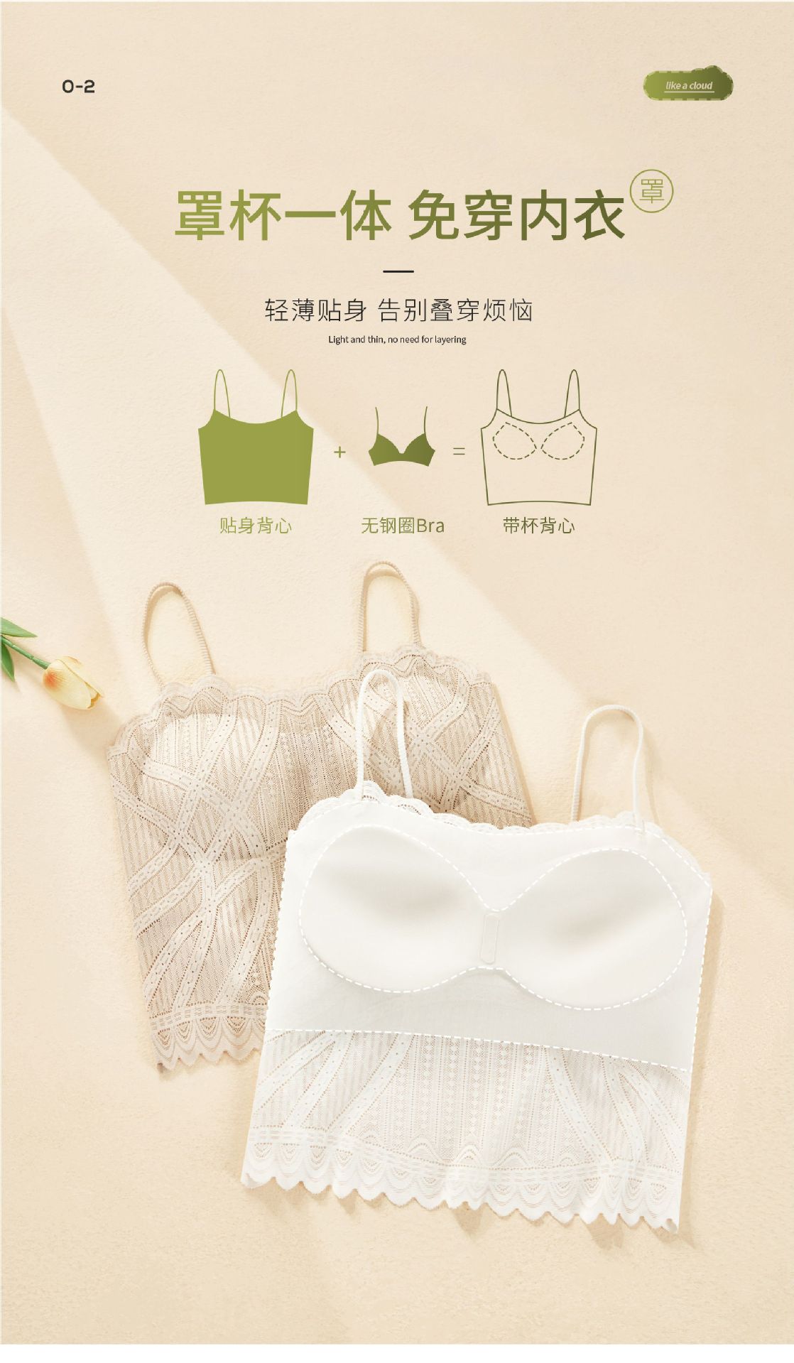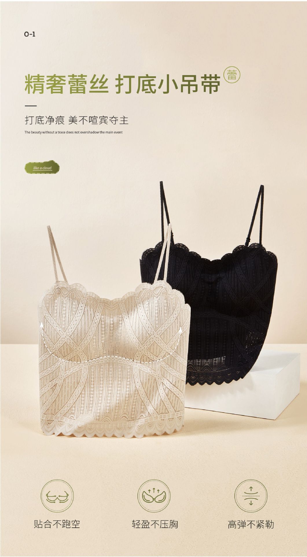 【免穿文胸】春夏新款蕾丝内搭美背显瘦小吊带 带胸垫内衣打底背心