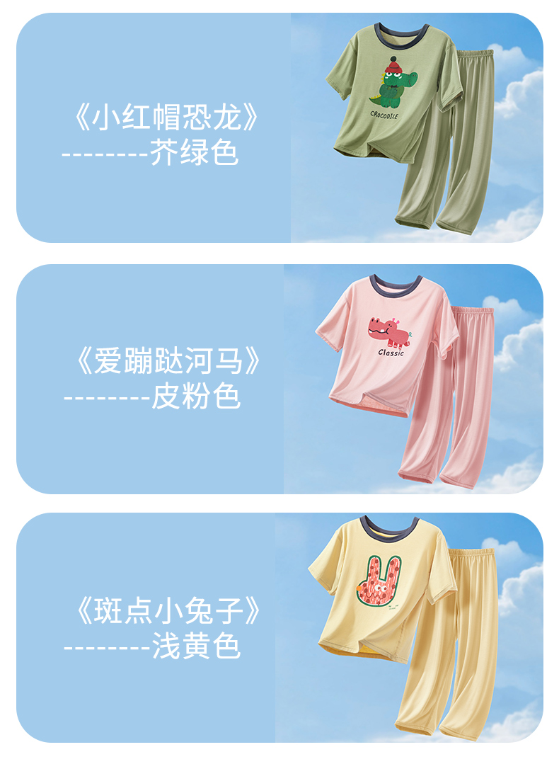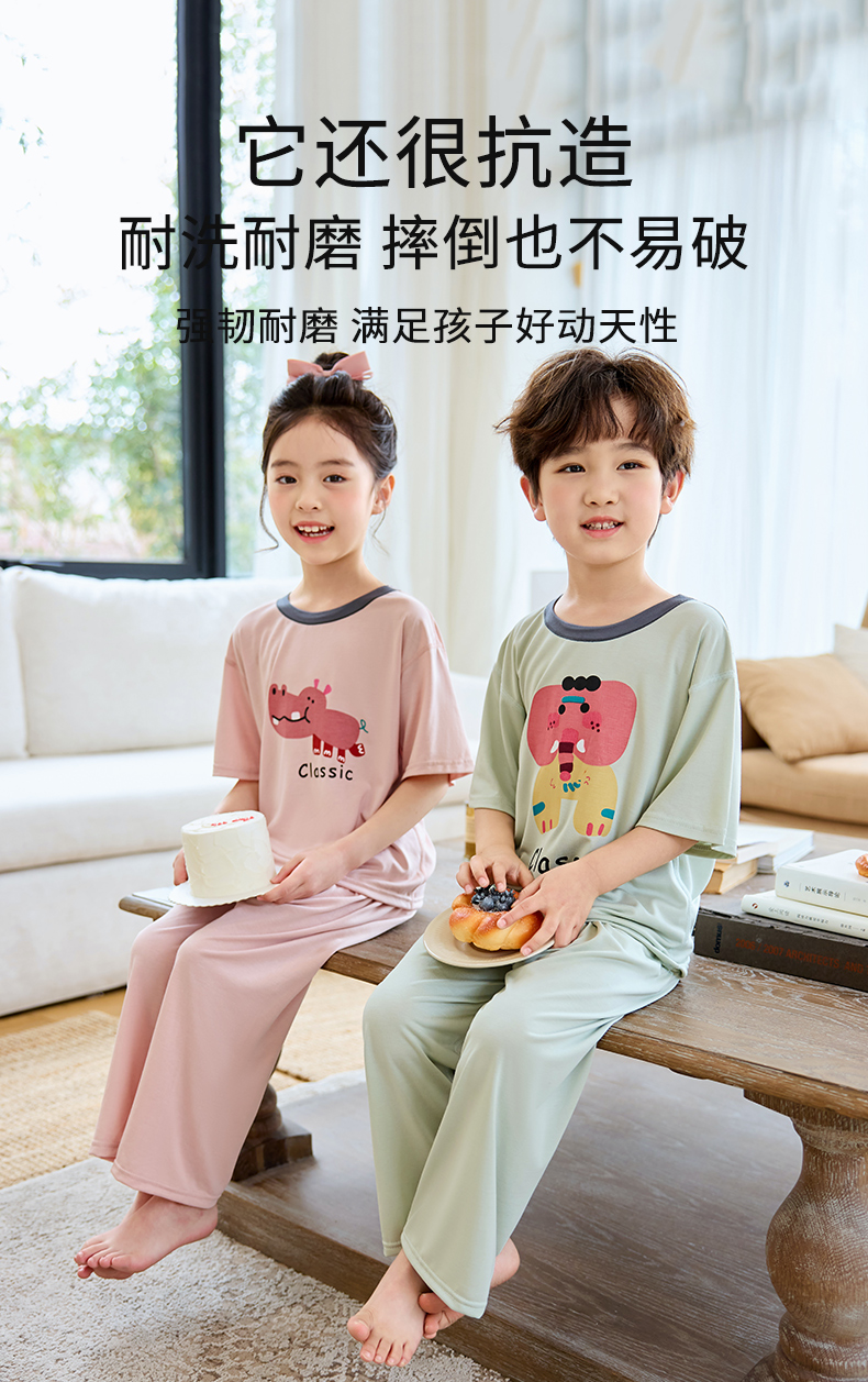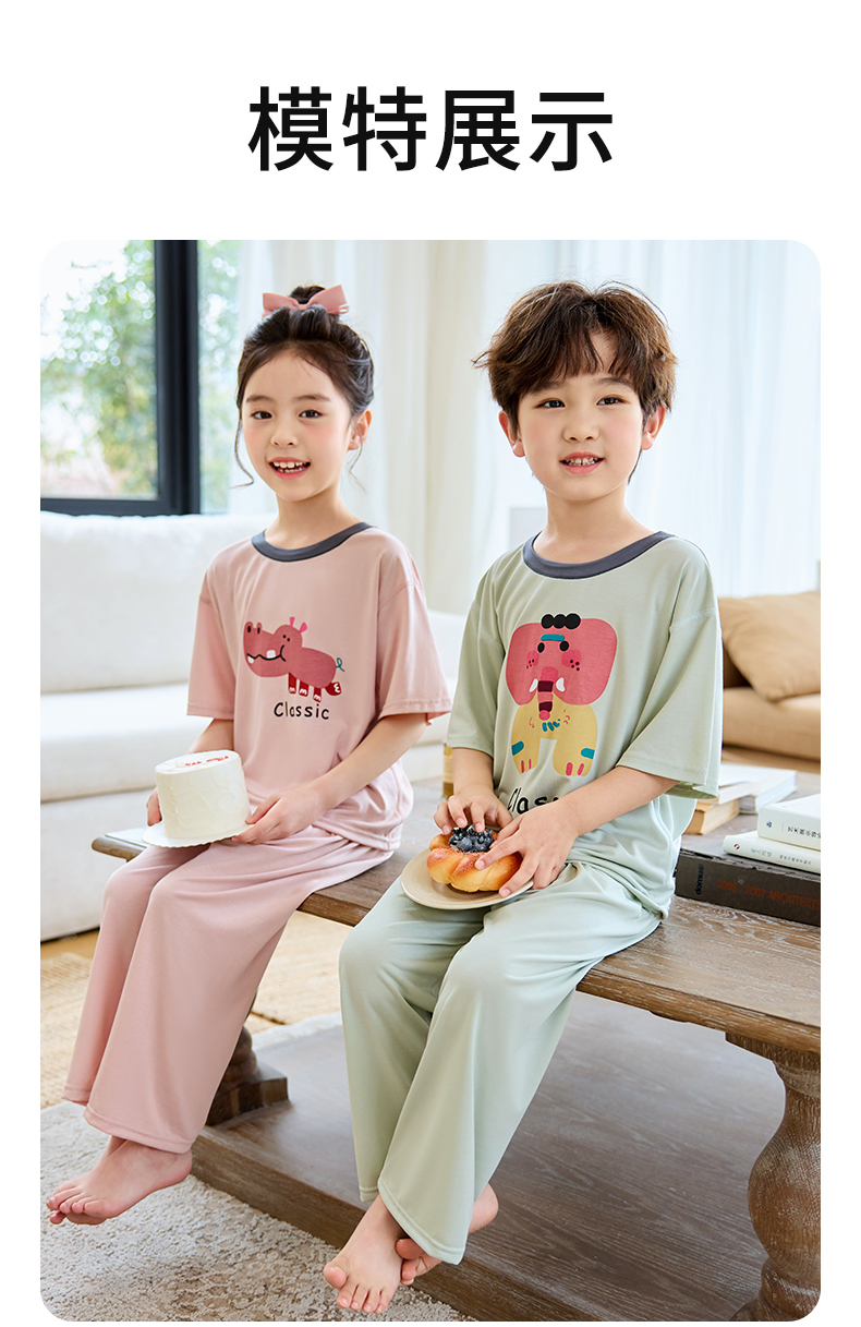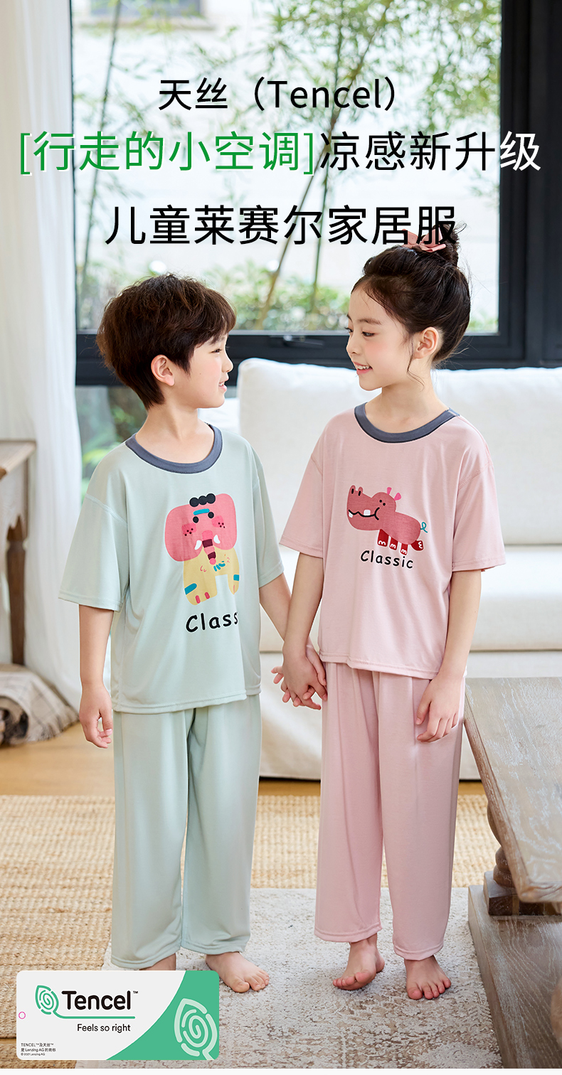 【A类品质,超舒适】【两套起拍,一套不发货】夏季儿新款儿童3.0天丝莱赛尔长裤短袖吸湿排汗空调服休闲可亲子家居服套装100%