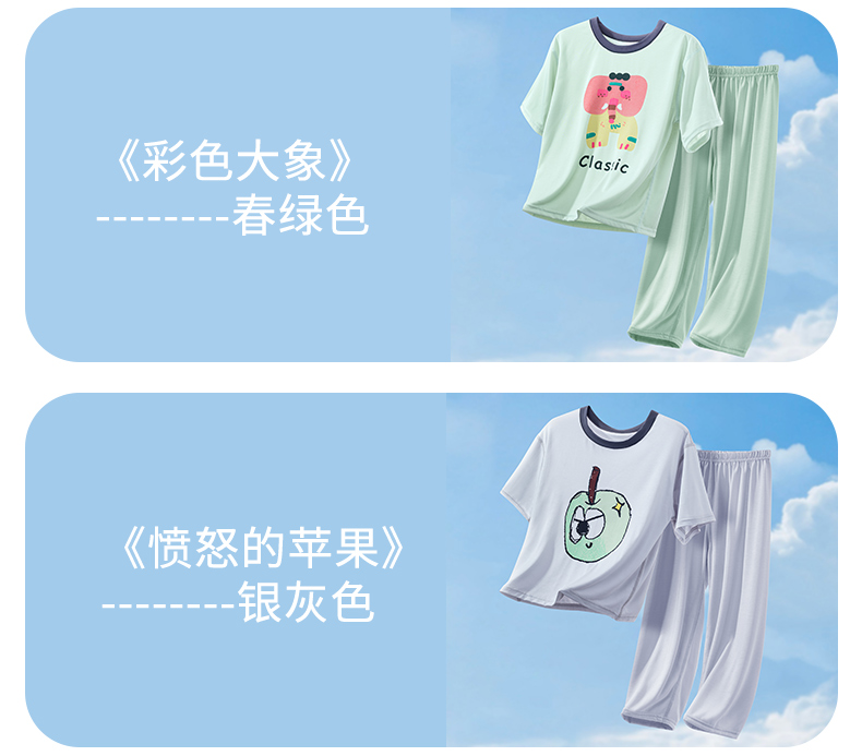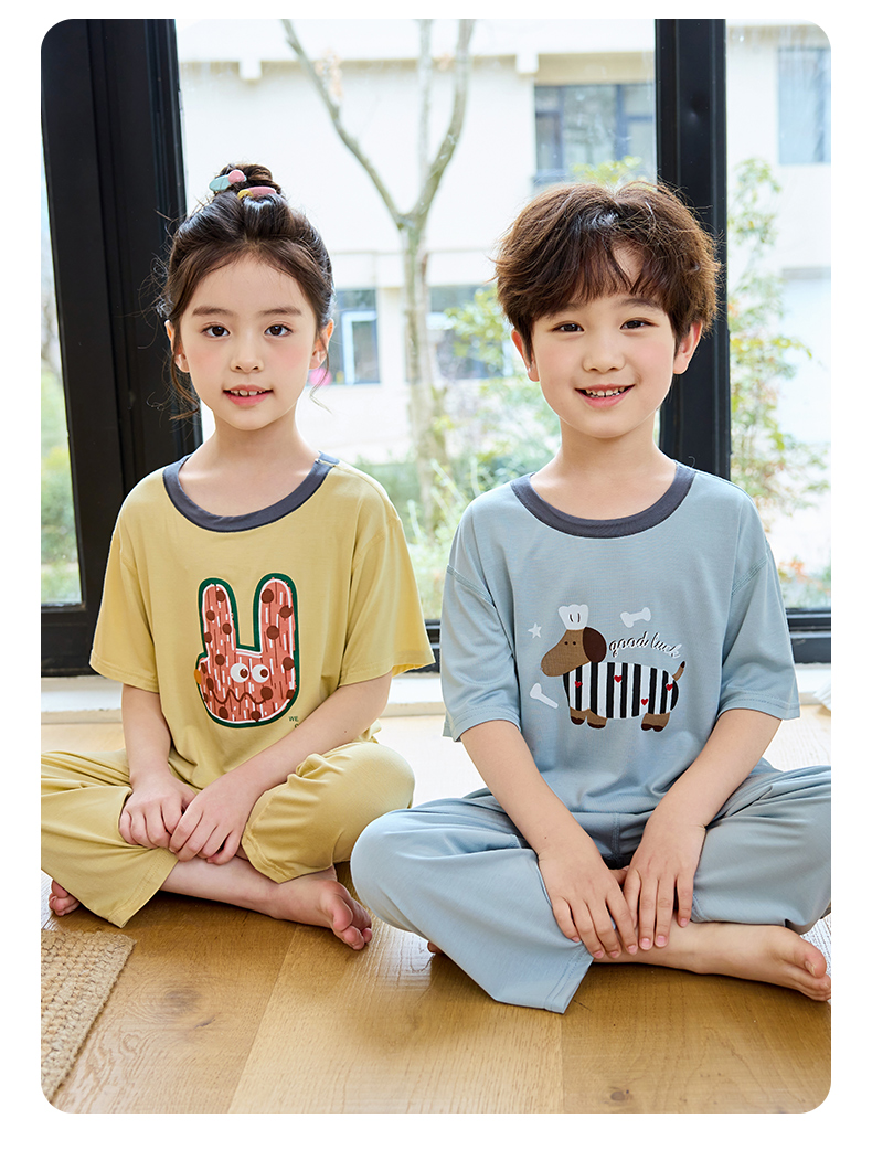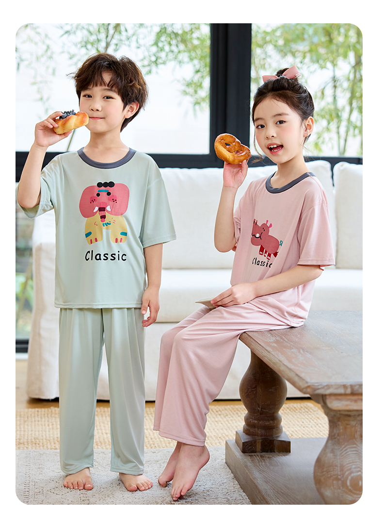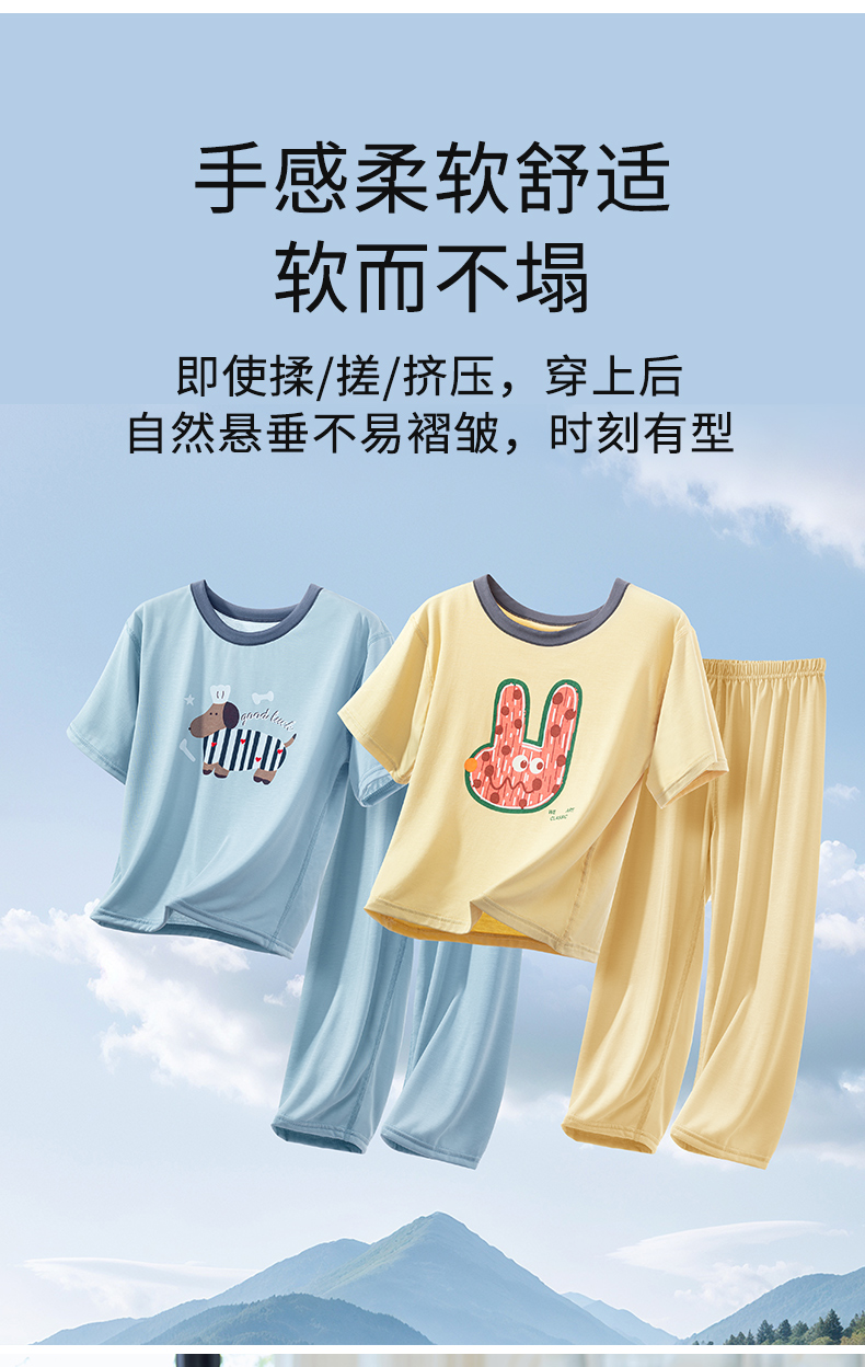 【A类品质,超舒适】【两套起拍,一套不发货】夏季儿新款儿童3.0天丝莱赛尔长裤短袖吸湿排汗空调服休闲可亲子家居服套装100%