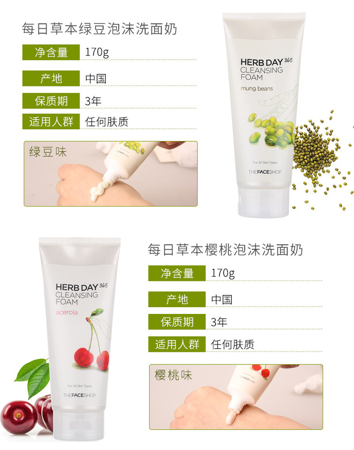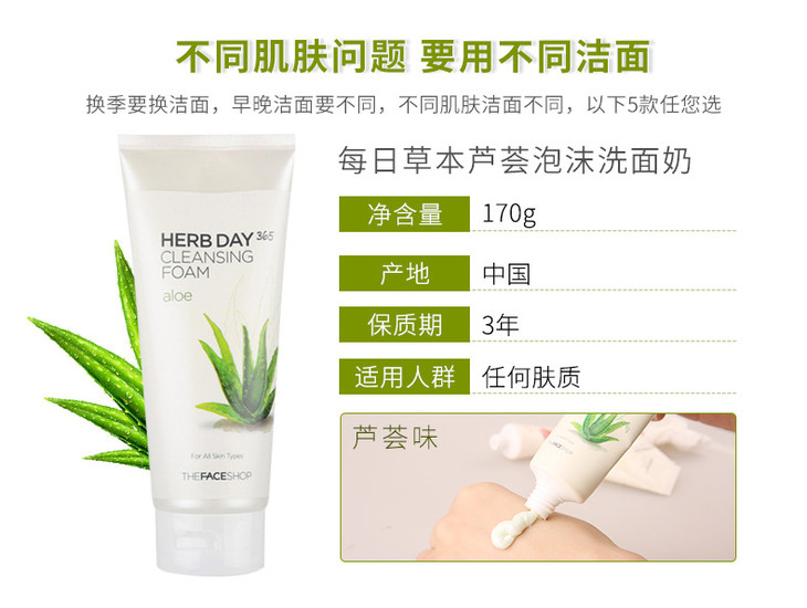 〖一般贸易〗韩国菲诗小铺泡沫洗面奶170g 专柜版带防伪 芦荟樱桃柠檬控油补水保湿祛痘深层清洁