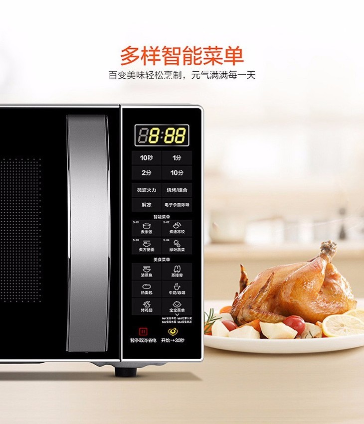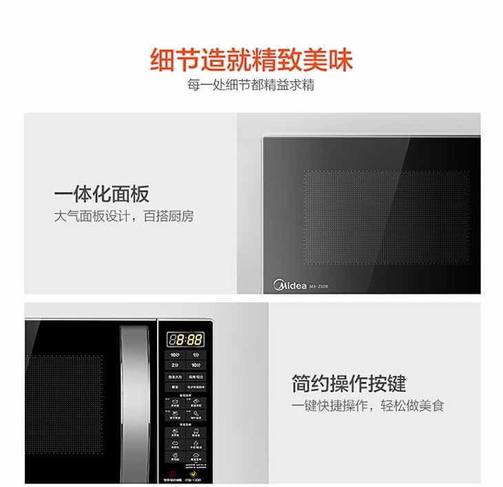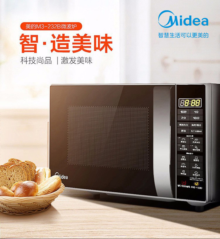 美的(Midea) 23L家用微波炉烤箱一体机 智能湿度感应 智能菜单 易清洁面板 M3-L232B 大容量平板微波炉