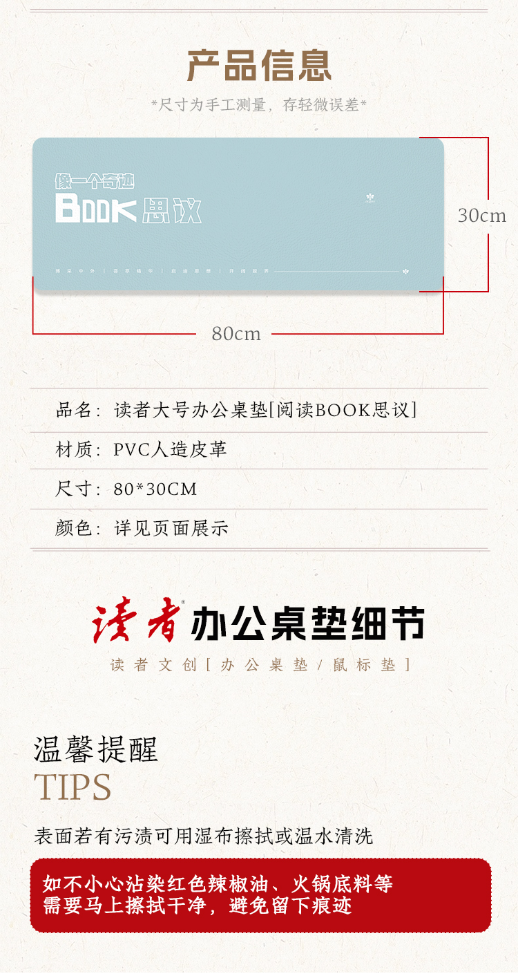 【读者】大号办公桌垫「阅读book思议」鼠标垫 蓝色/白色/紫色自选 读者文创