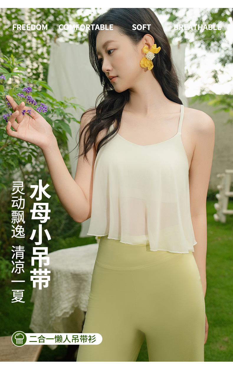 美愫瑜伽吊带背心女短款假两件网纱轻薄普拉提舞蹈内观流时尚运动 商品图0
