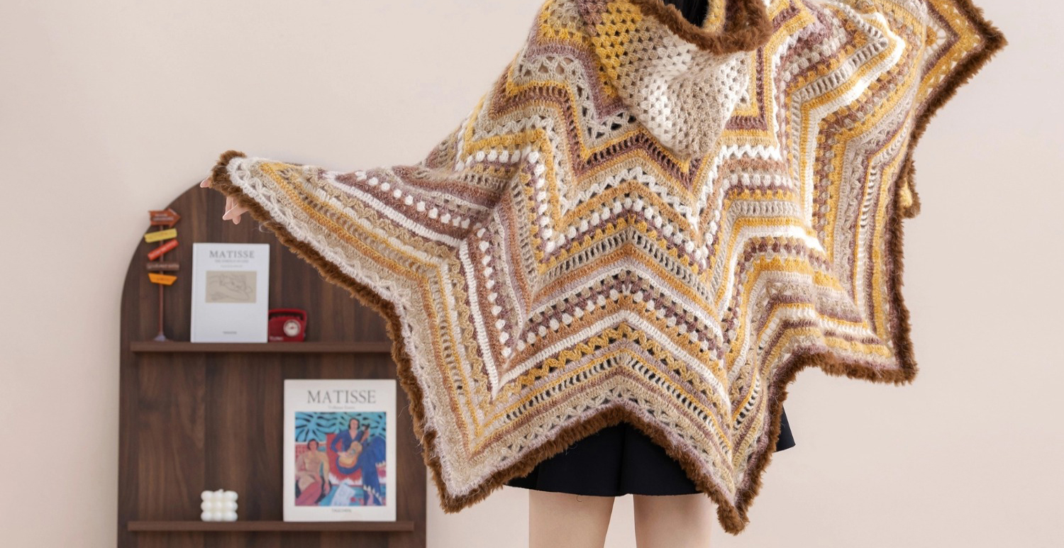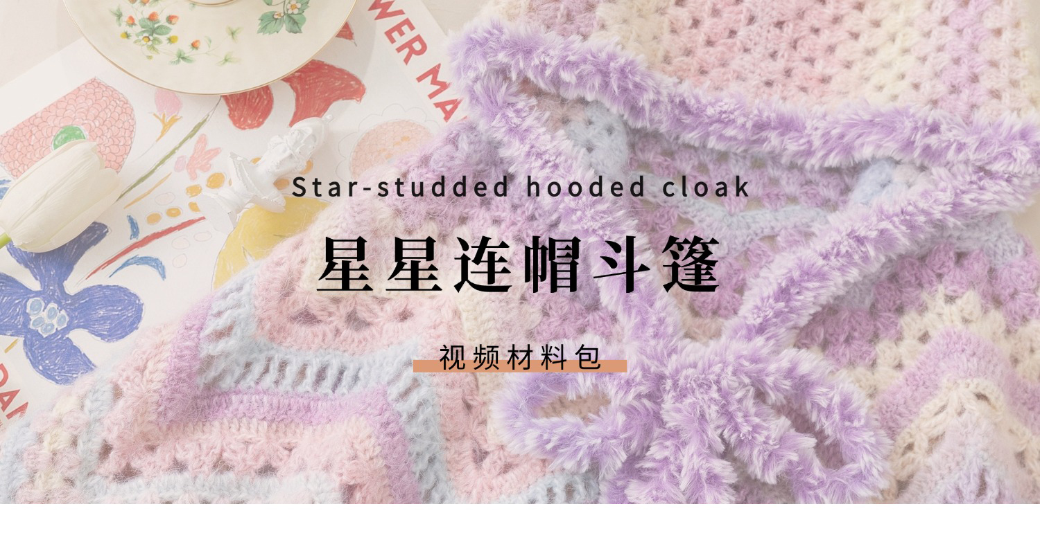 苏苏姐家星星连帽斗篷手工diy编织钩针毛线团自制衣服斗篷材料包