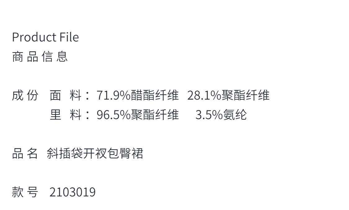 气质时尚-莫兰系-斜插袋开叉高腰-春夏 显瘦清新 半身裙 2103019