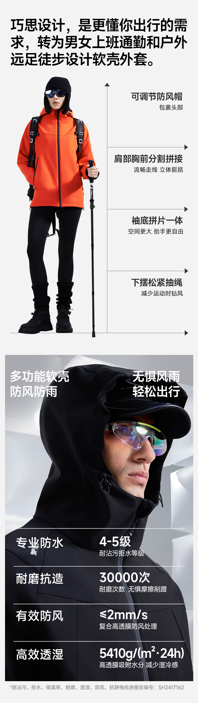 素湃Supield防风防雨软壳衣户外多功能轻量春季保暖夹克弹力外套 SS5496