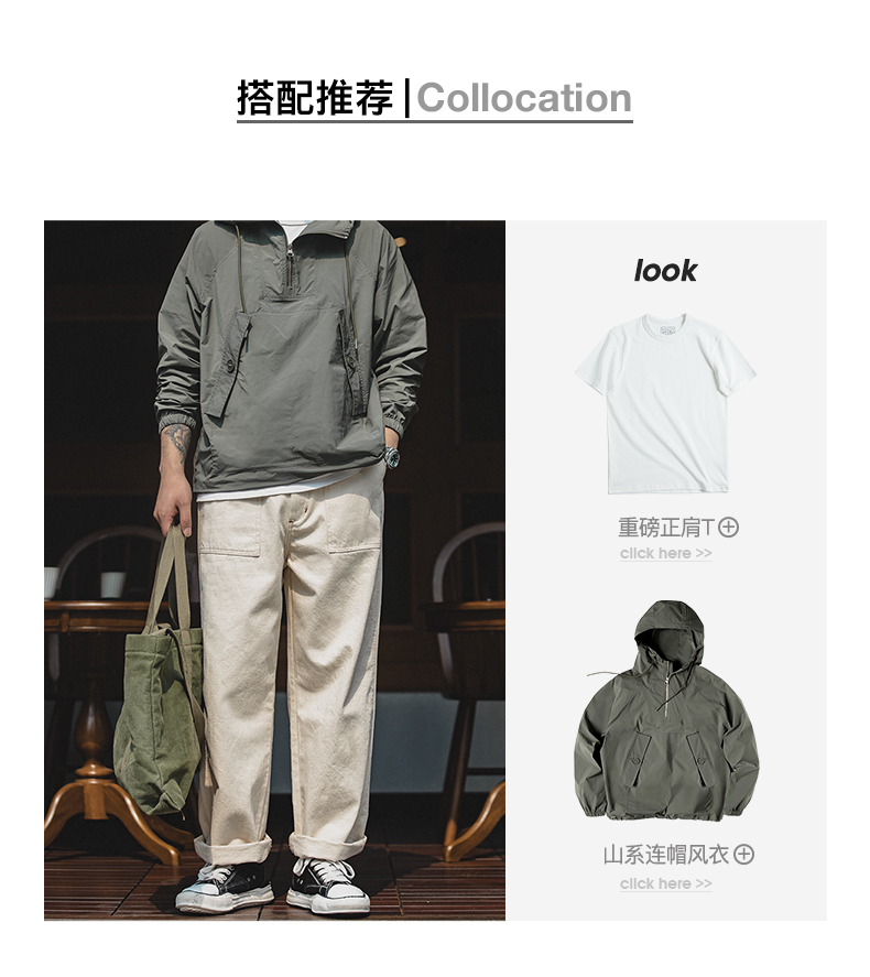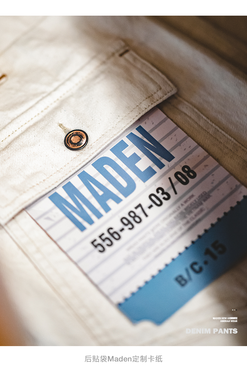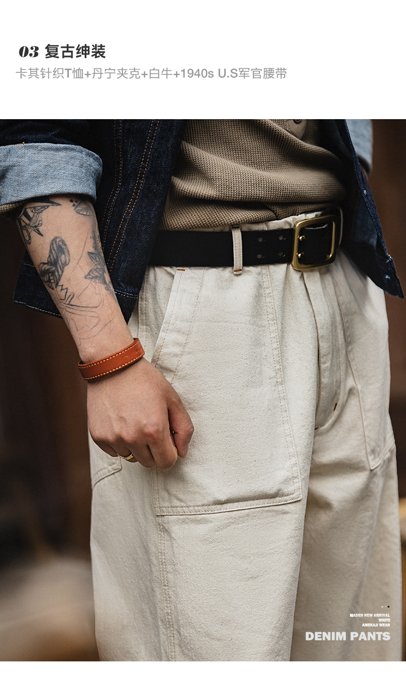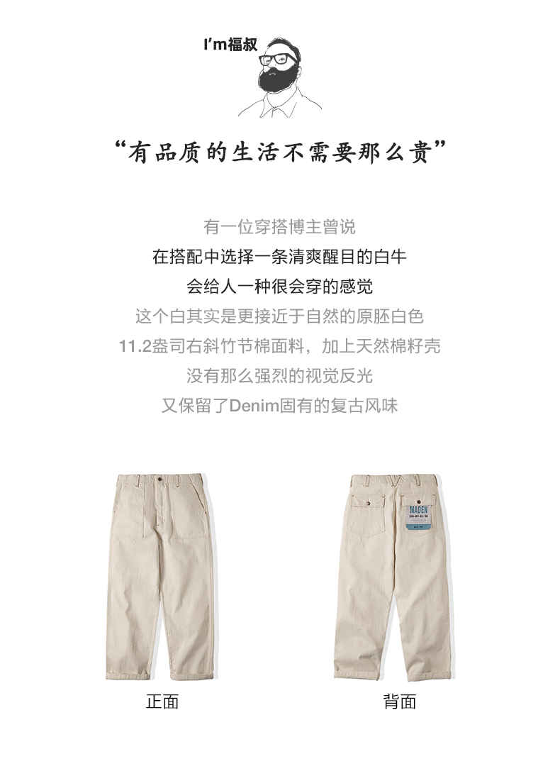 工装优选 日系复古棉籽壳米白色休闲牛仔裤耐磨宽松直筒长裤子男秋
