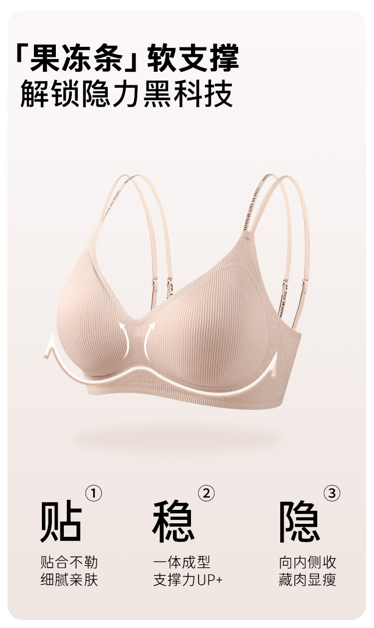 A1-【A-C杯】【一衣多穿美背】果冻条软支撑内衣女小胸舒适薄杯聚拢不空杯文胸 沁粉佳人+凝芷清芬