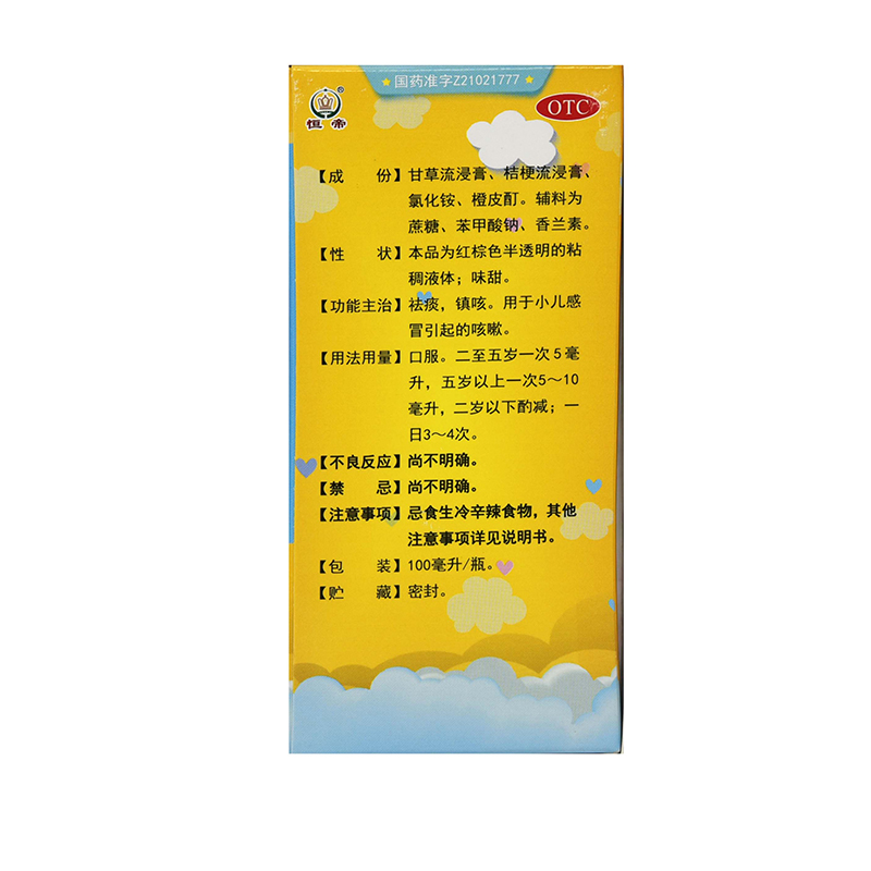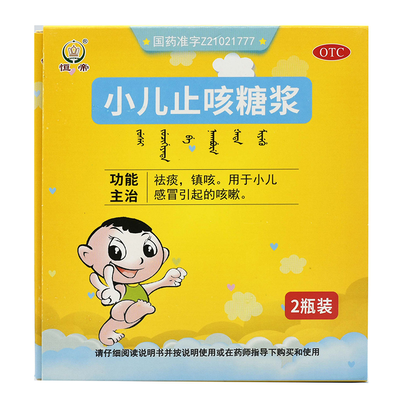 2瓶装恒帝小儿止咳糖浆100ml*1瓶2盒装 小儿感冒引起的咳嗽 祛痰