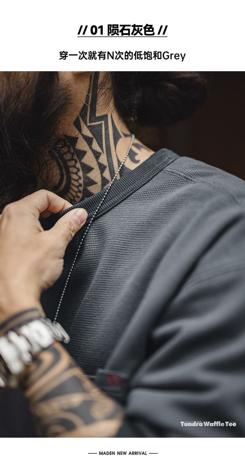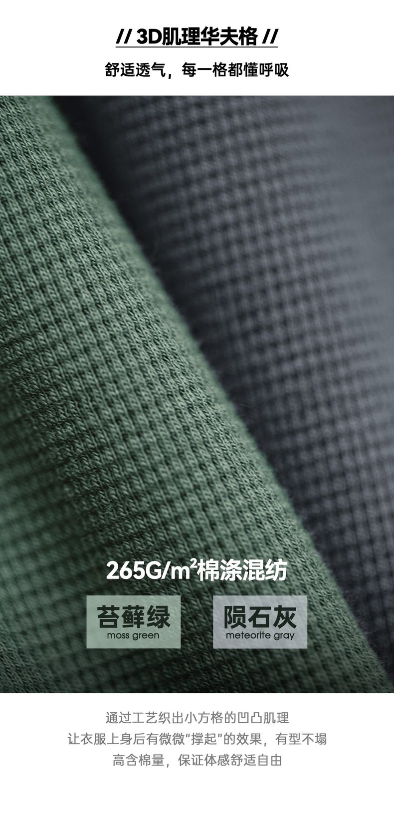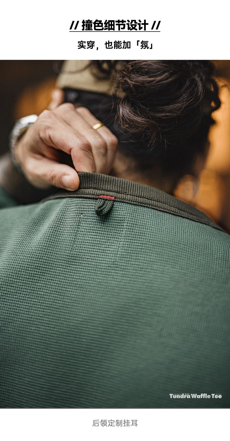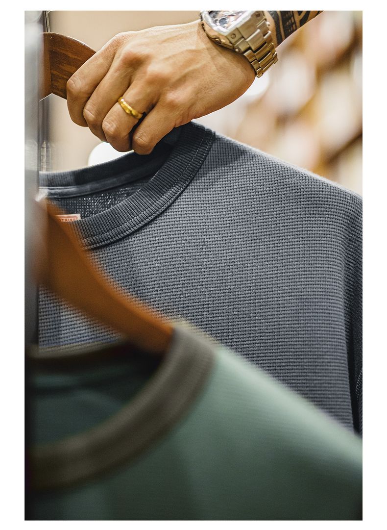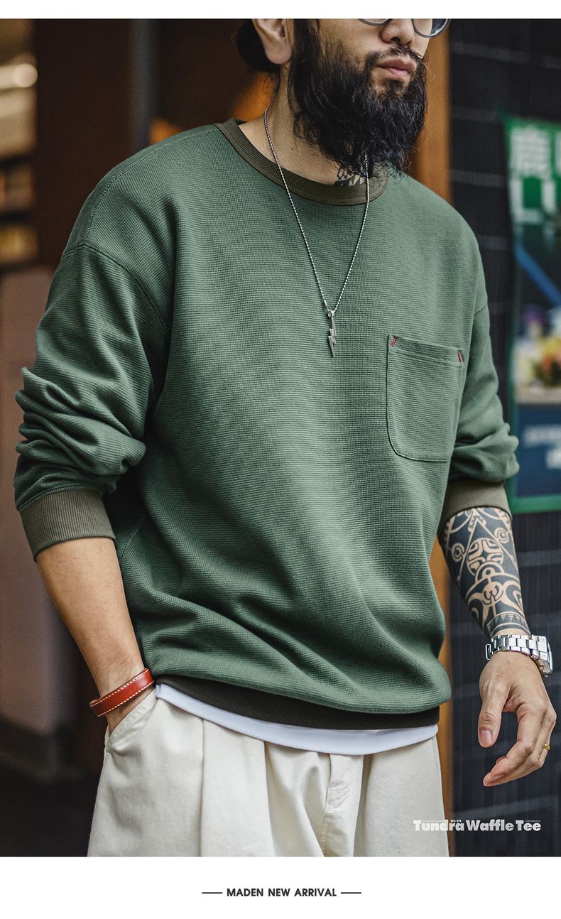 工装优选 美式休闲华夫格口袋T恤圆领套头卫衣宽松长袖上衣男春季