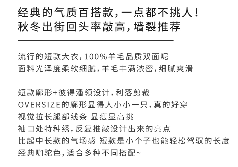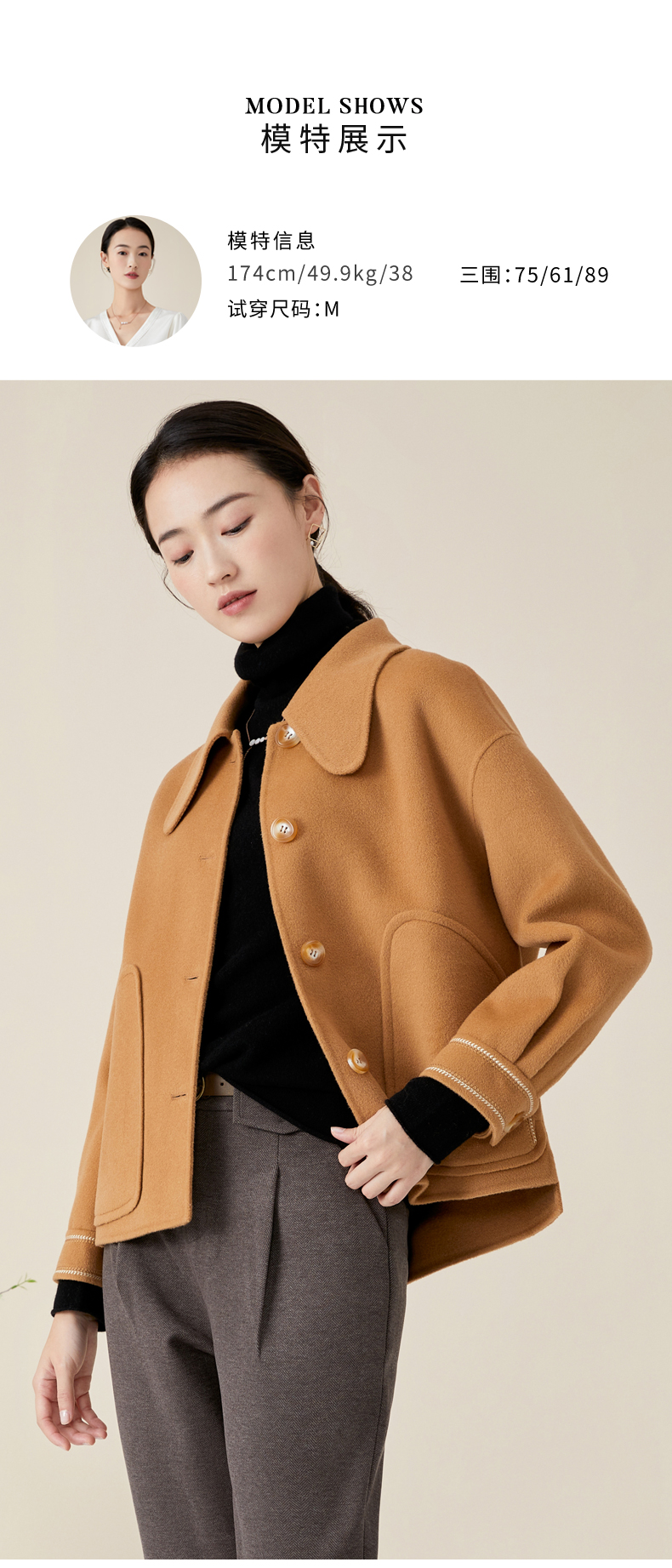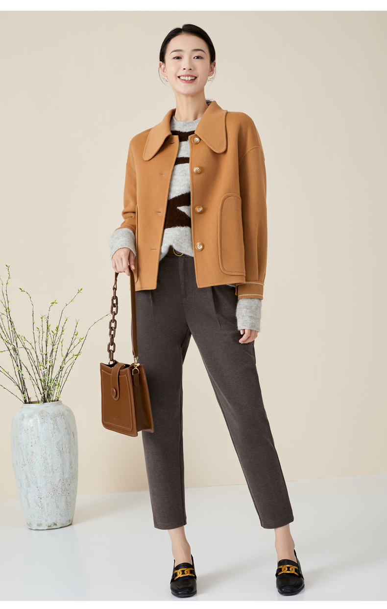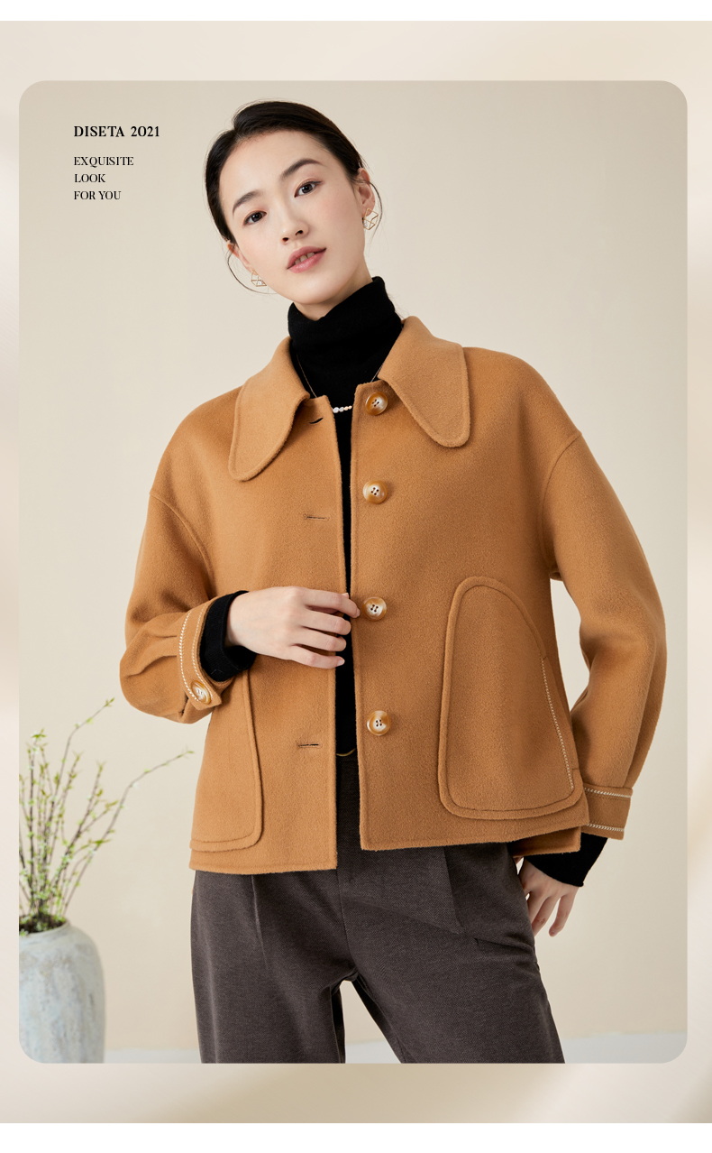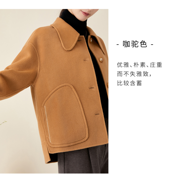 玳莎双面呢短款外套女冬季新款小个子简约通勤宽松毛呢大衣 BD37302