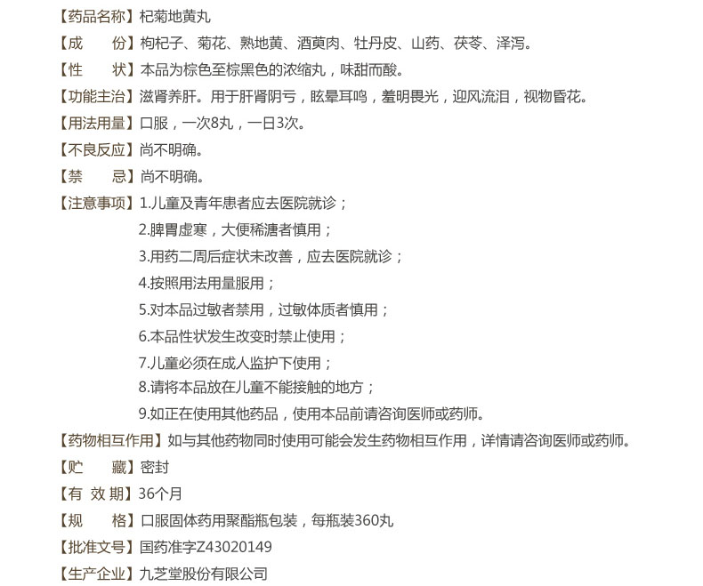 低至13元/盒】九芝堂 杞菊地黄丸200丸/盒肝肾阴亏眩晕耳鸣昏花