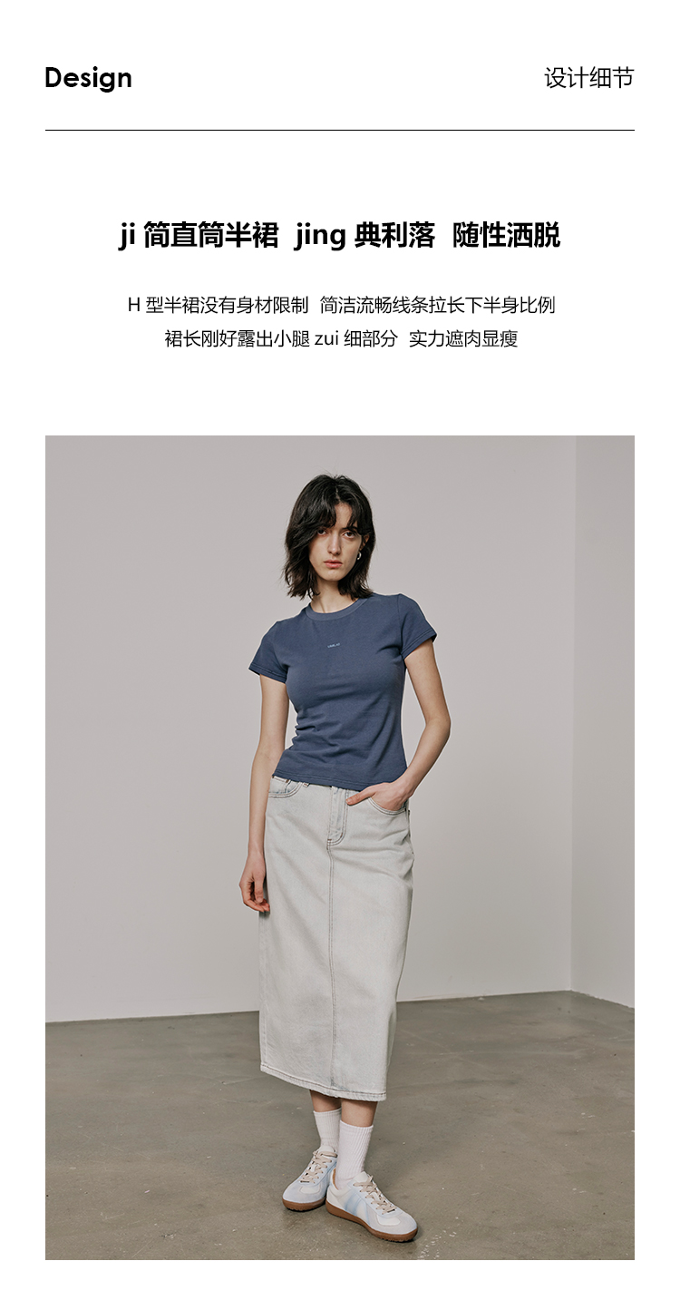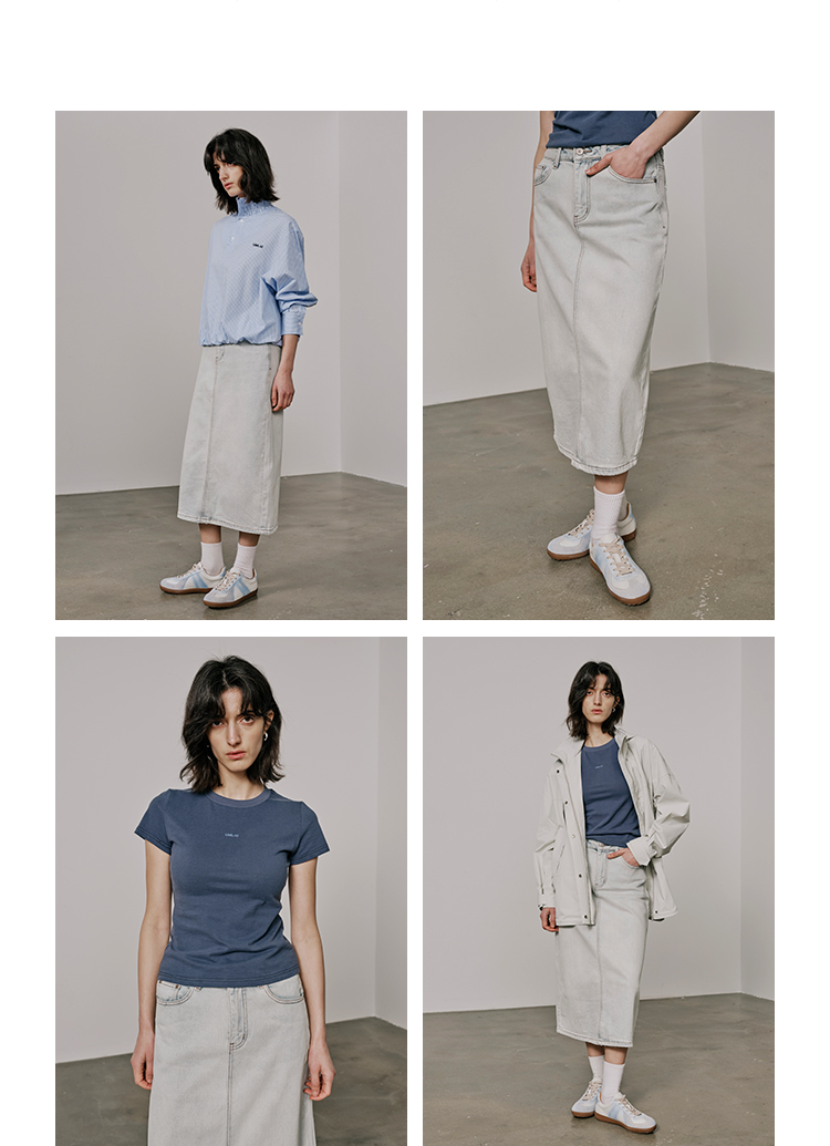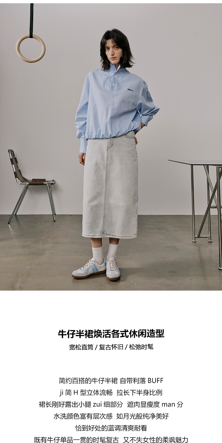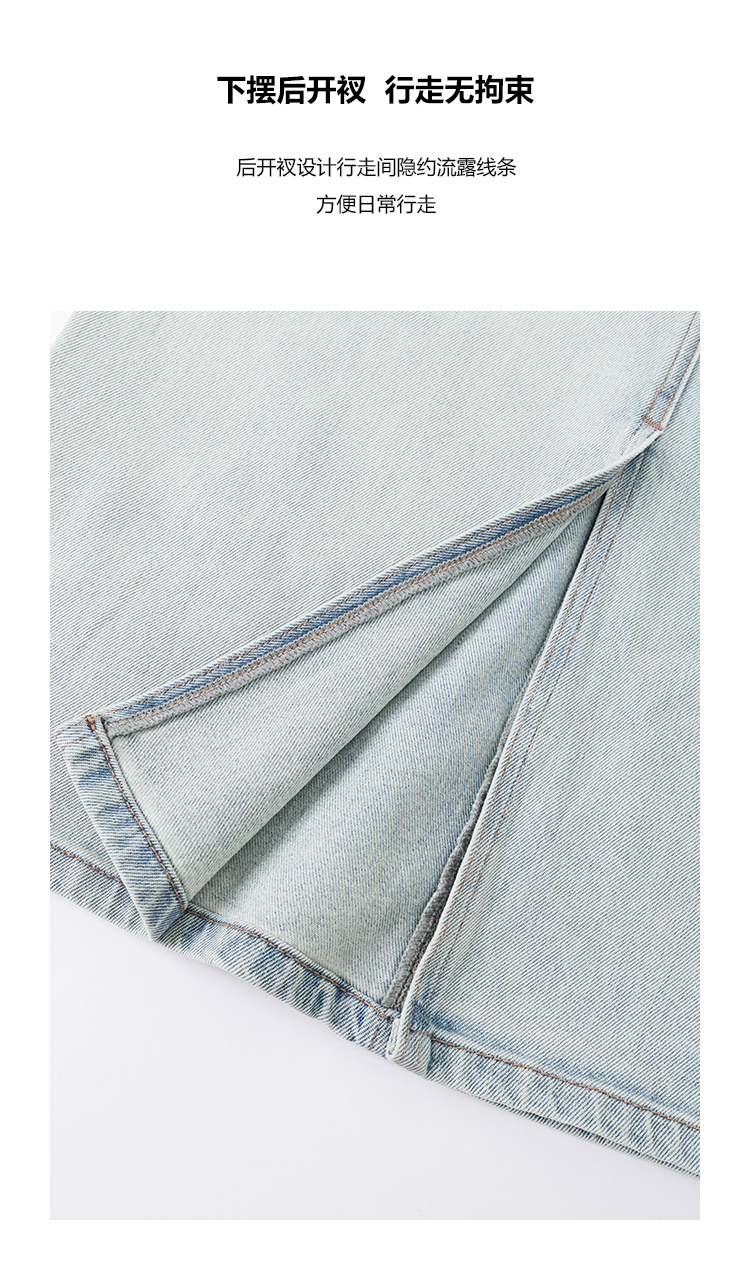 UMILAB【垦丁】高含棉量高弹VTG复古水洗开衩直筒牛仔半裙BD781M