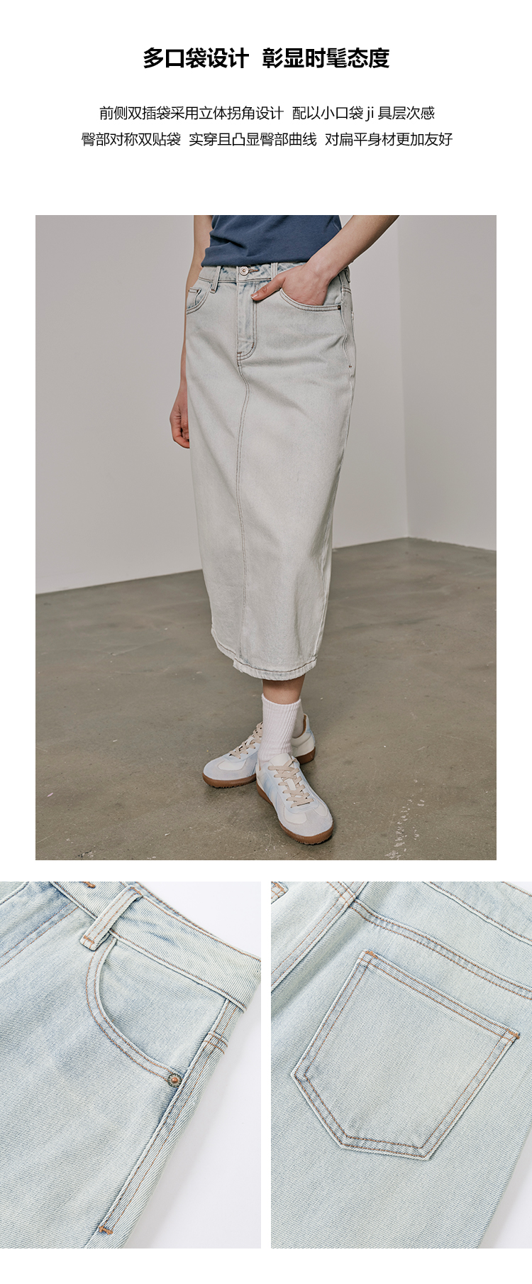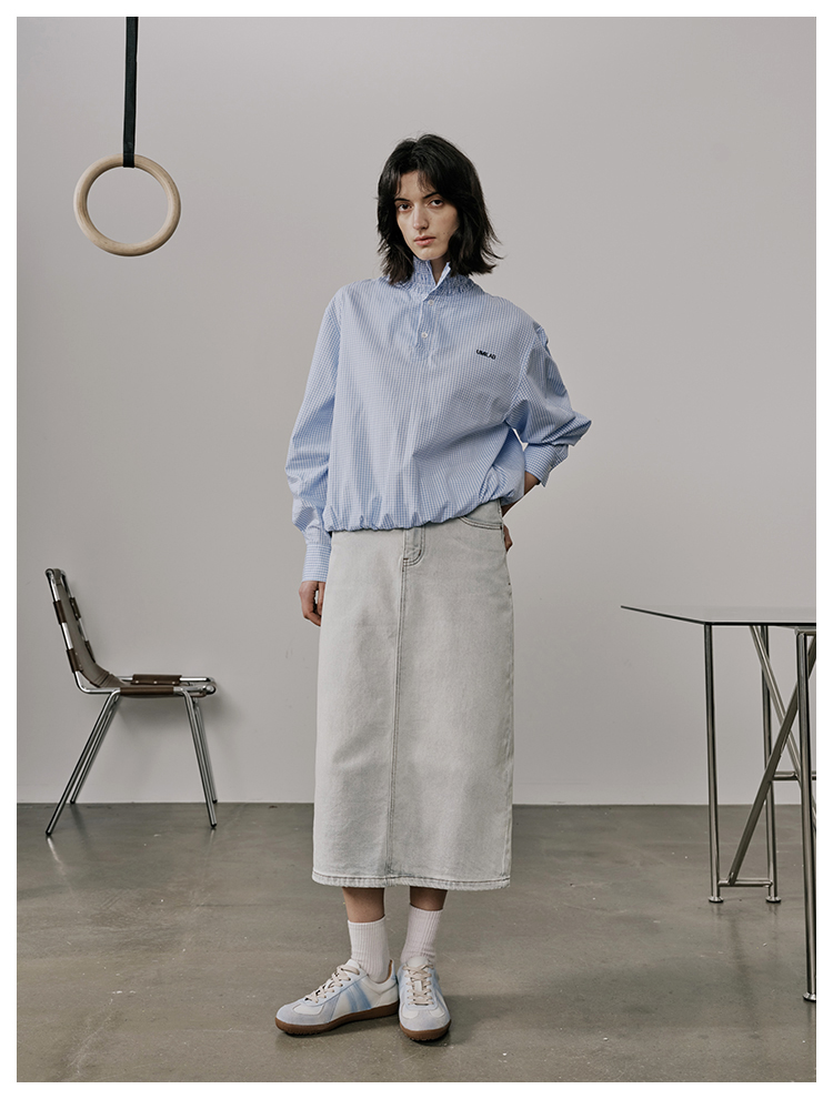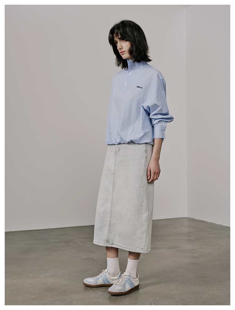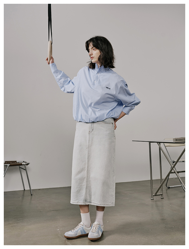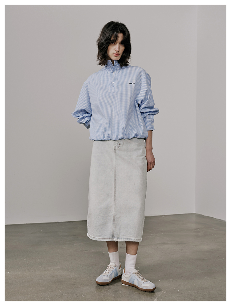 UMILAB【垦丁】高含棉量高弹VTG复古水洗开衩直筒牛仔半裙BD781M