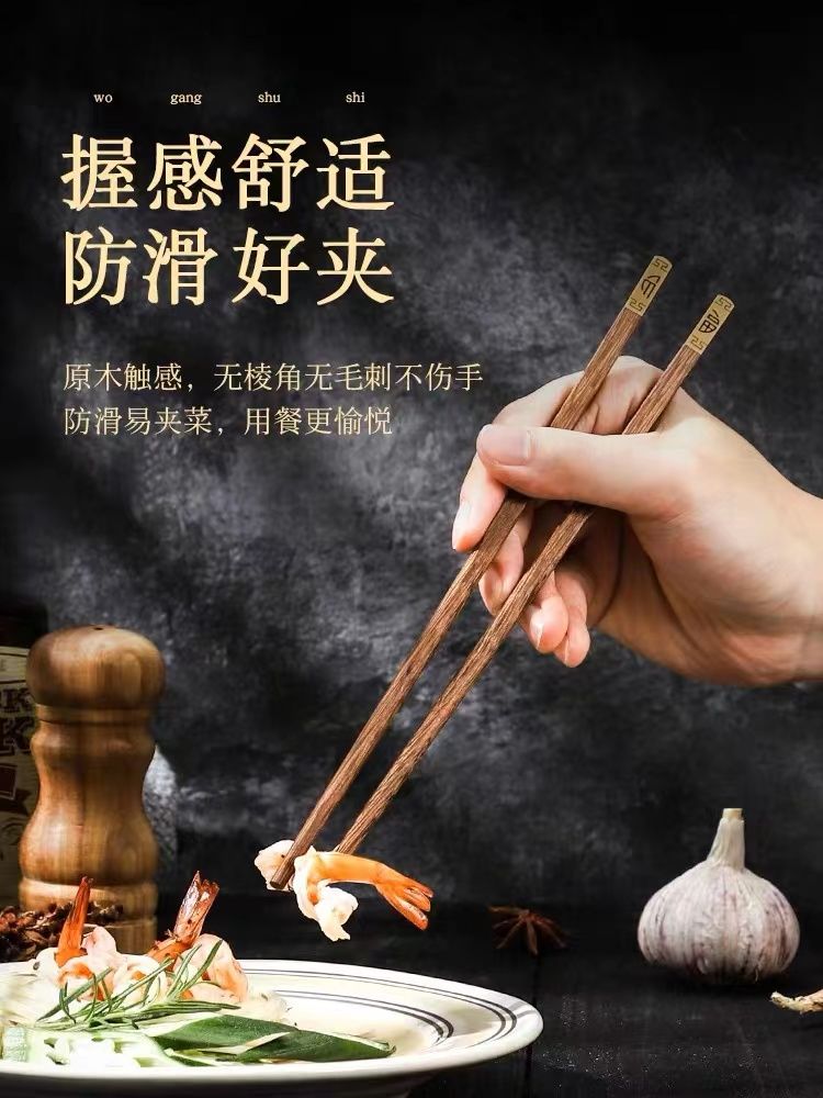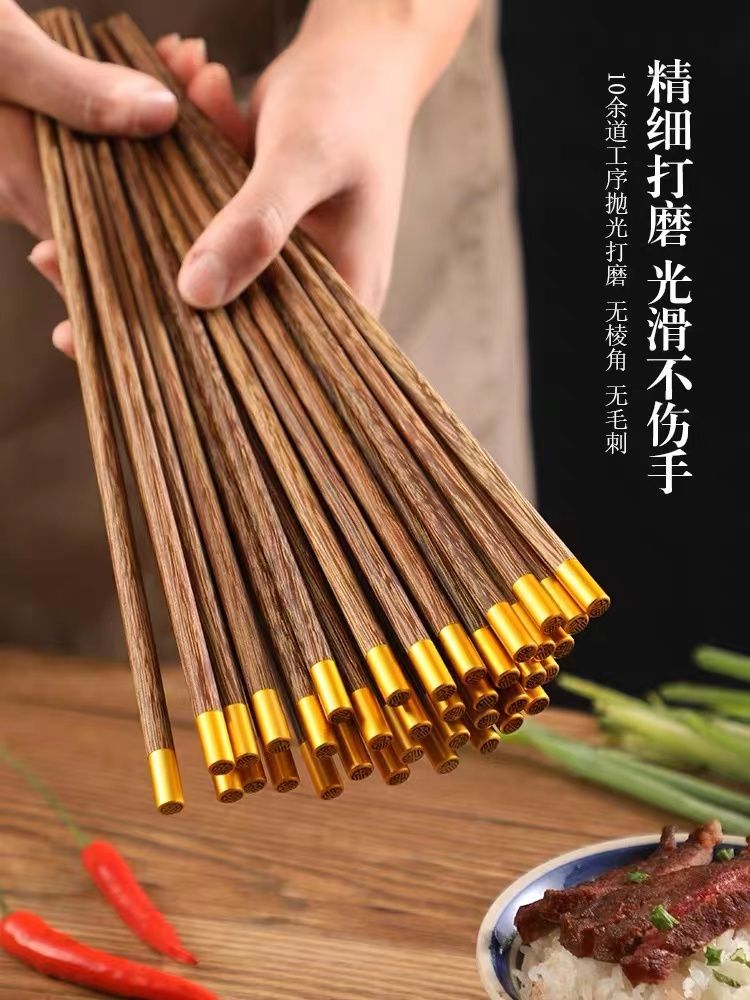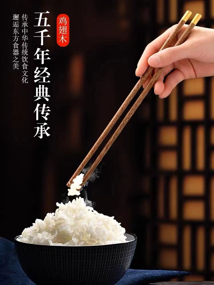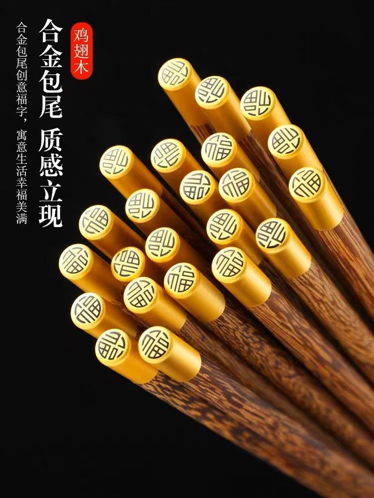 福筷来临木筷无漆无蜡鸡翅木筷子家用餐具实木筷子量贩套装可油炸