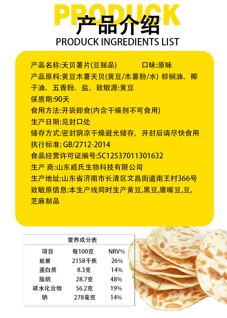 天贝脆片(薯片) 净素配方 素食零食 即食天贝原味 大豆醇香 酥脆口感
