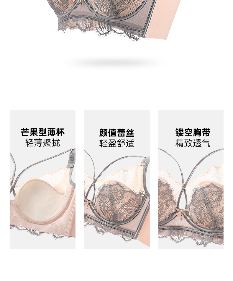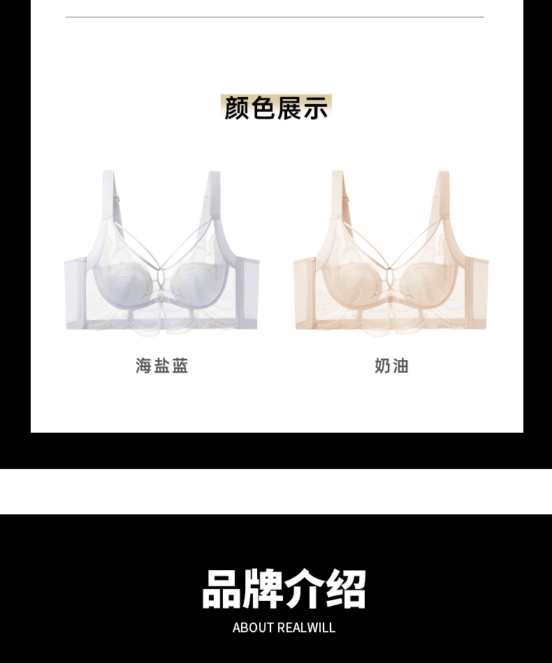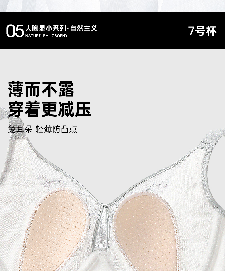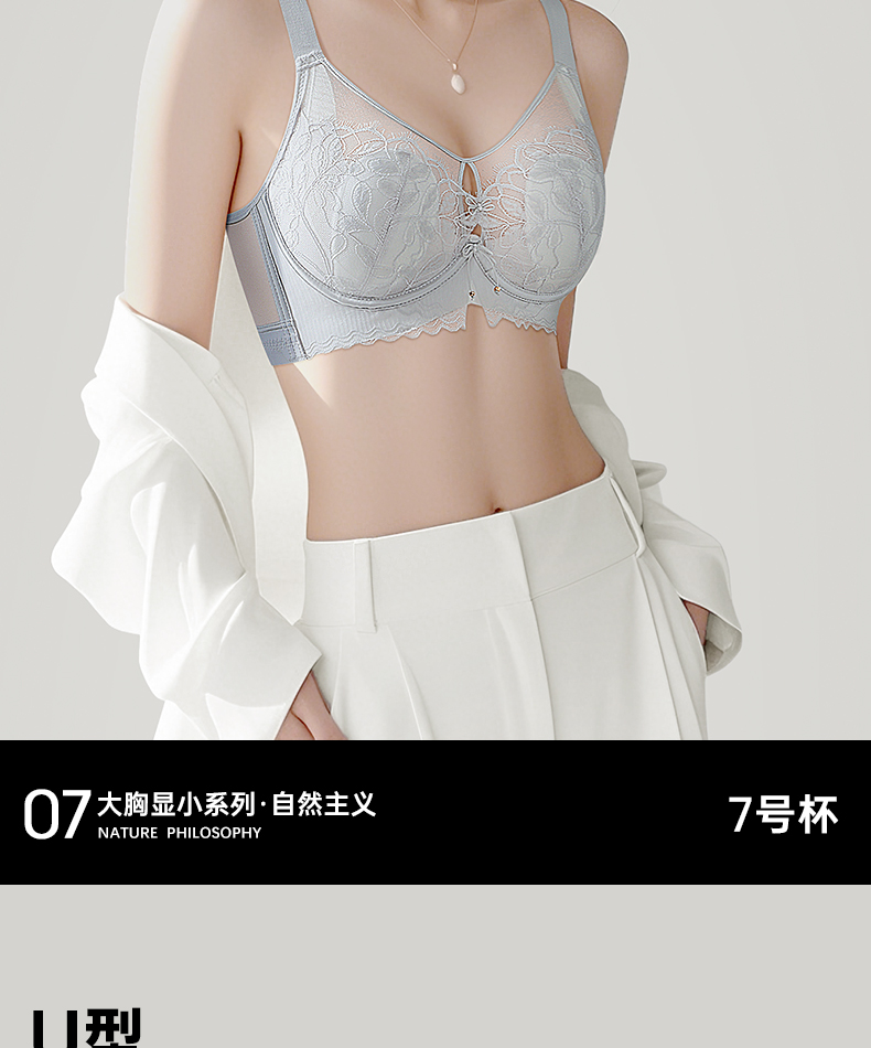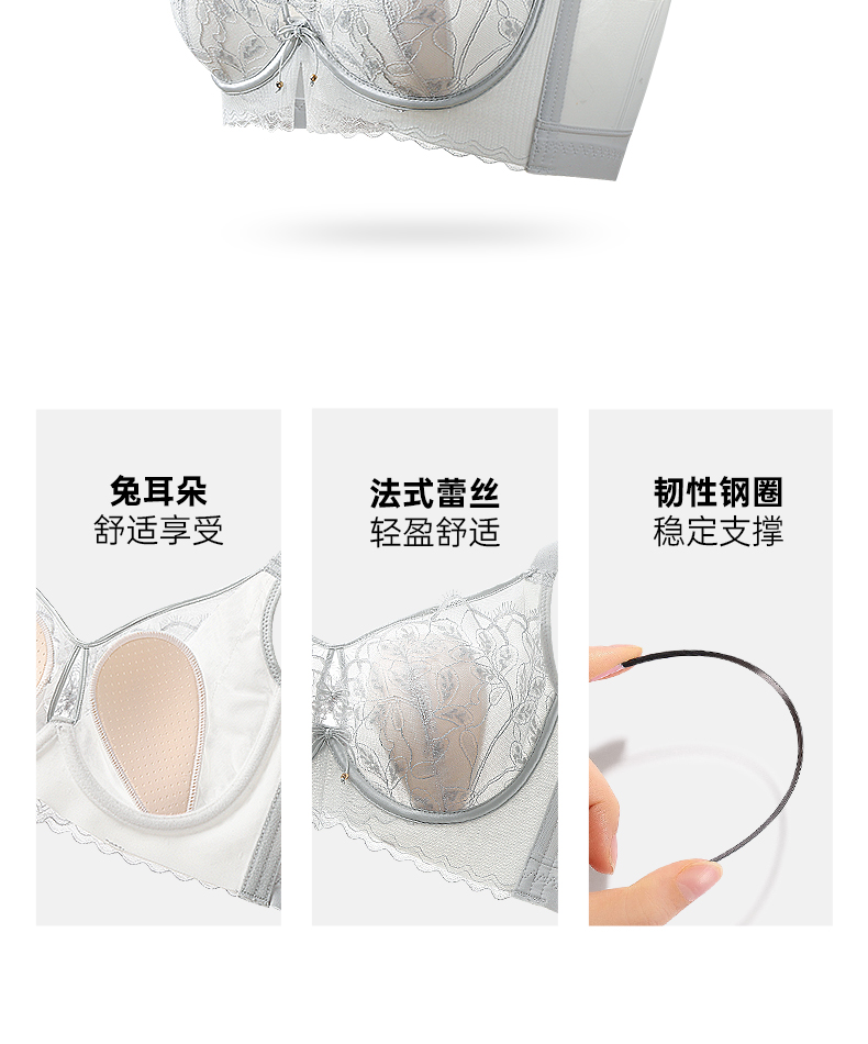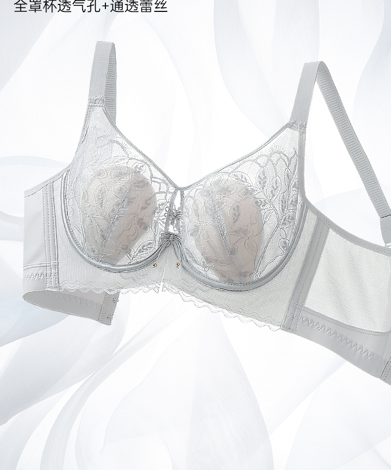 D2-【B-D杯】【大胸显小 韧性软钢圈】润微杯垫厚度0.3cm 侧翼12.5收副乳 性感蕾丝聚拢薄杯收副乳调整文胸 绮梦娇韵/蓝花笔韵