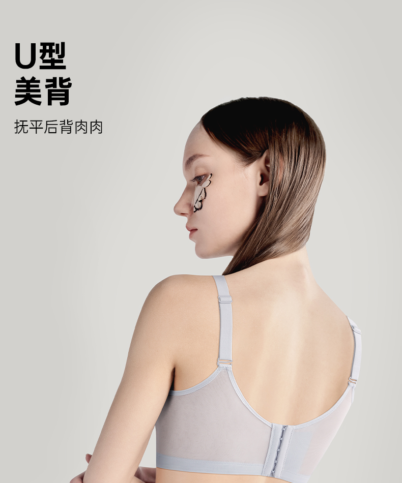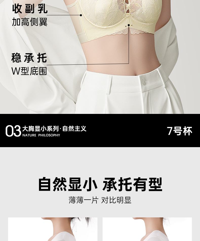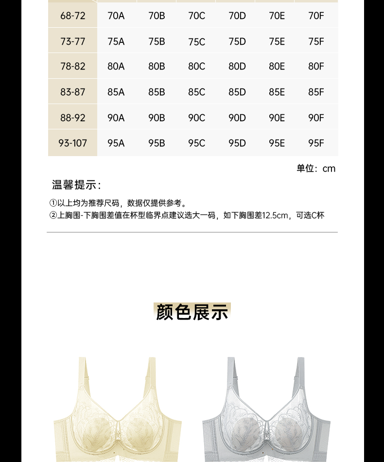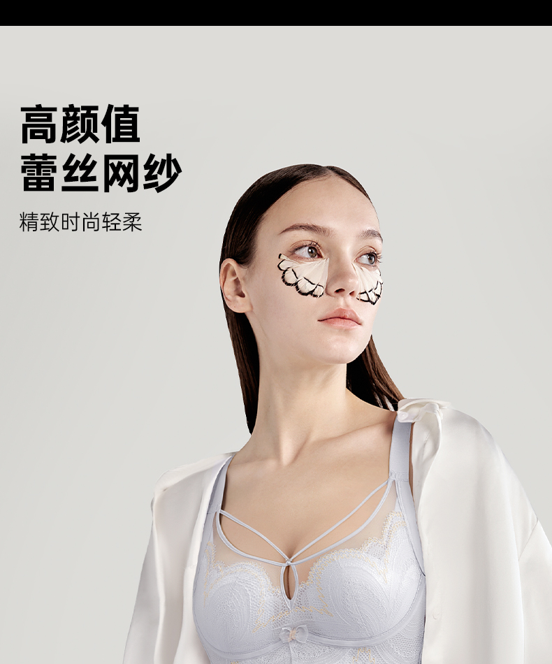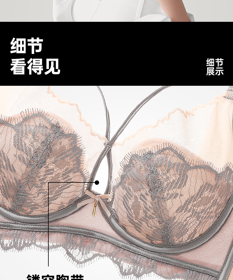 D2-【B-D杯】【大胸显小 韧性软钢圈】润微杯垫厚度0.3cm 侧翼12.5收副乳 性感蕾丝聚拢薄杯收副乳调整文胸 绮梦娇韵/蓝花笔韵