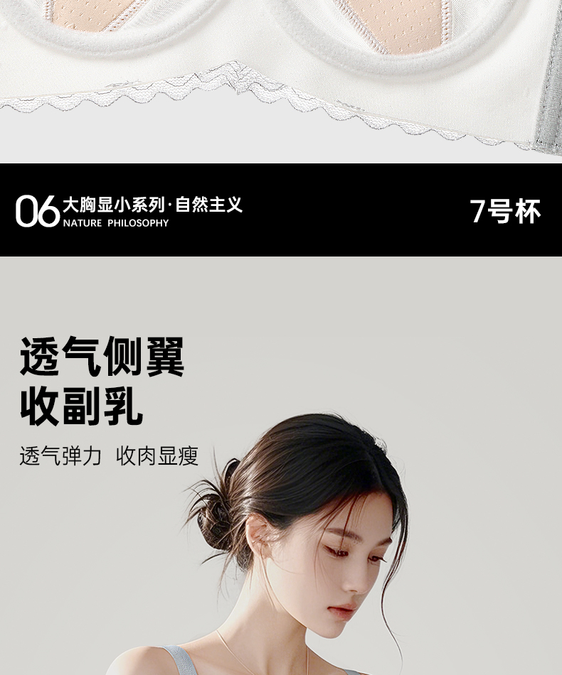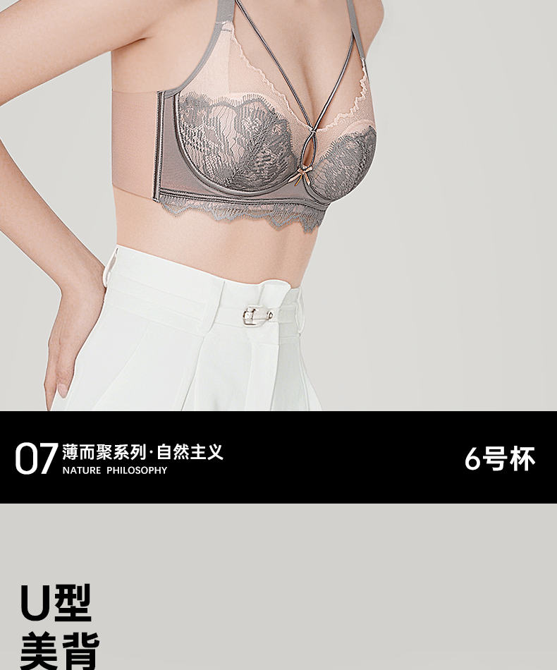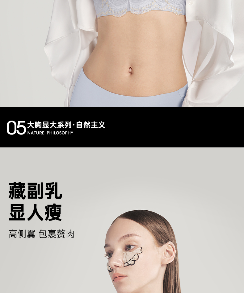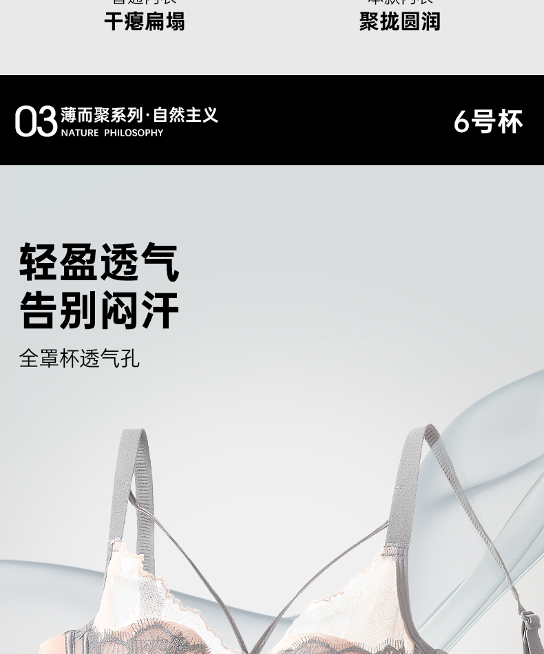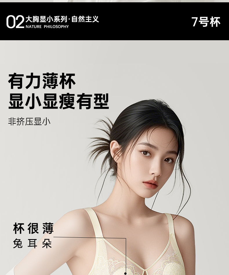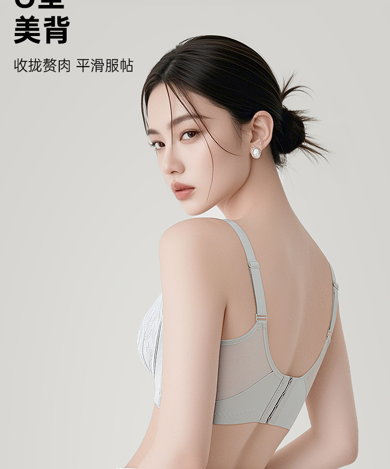 D2-【B-D杯】【大胸显小 韧性软钢圈】润微杯垫厚度0.3cm 侧翼12.5收副乳 性感蕾丝聚拢薄杯收副乳调整文胸 绮梦娇韵/蓝花笔韵