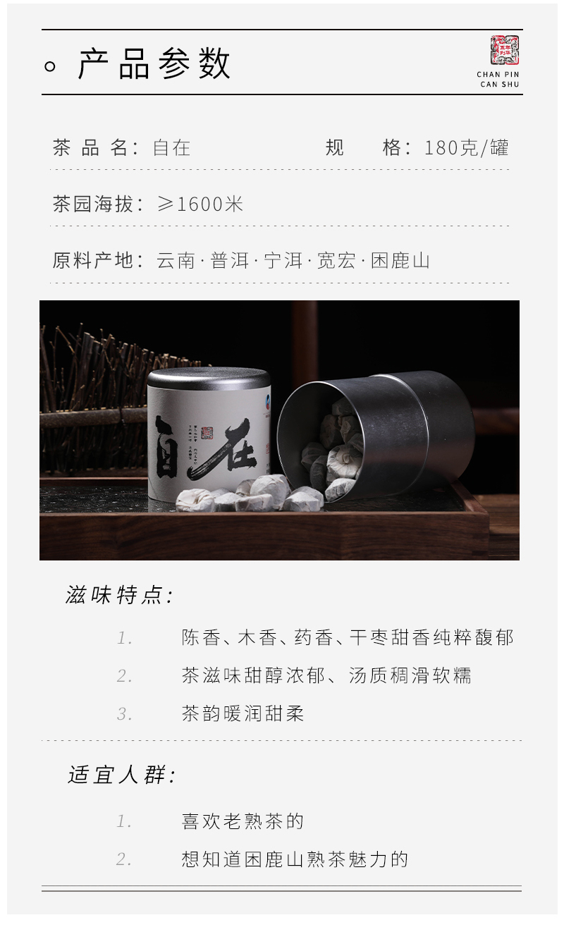 【8折】1996 《自在》子弹头迷你小熟沱 180克*1罐 熟茶