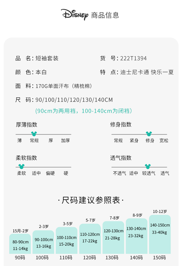 迪士尼夏季新品男女童套装透气儿童套装休闲婴幼儿套装222T1394