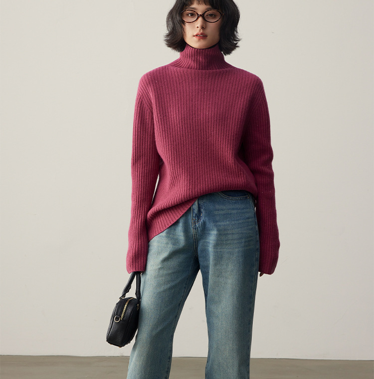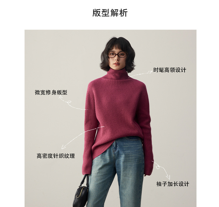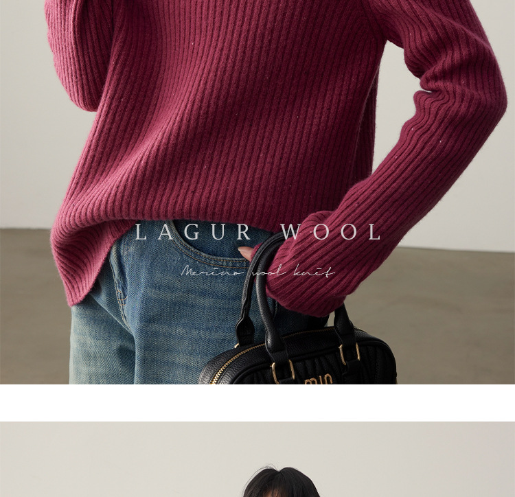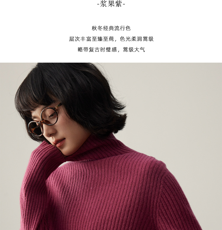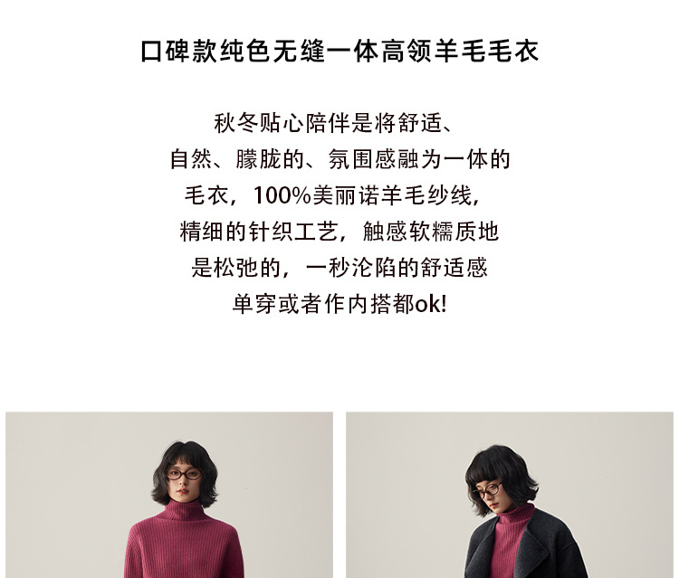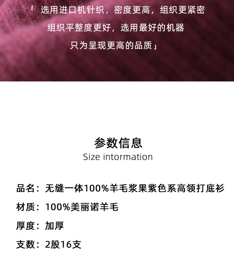 2024无缝一体100%羊毛浆果紫色系高领打底衫内搭上衣外穿毛衣羊毛衫女款!