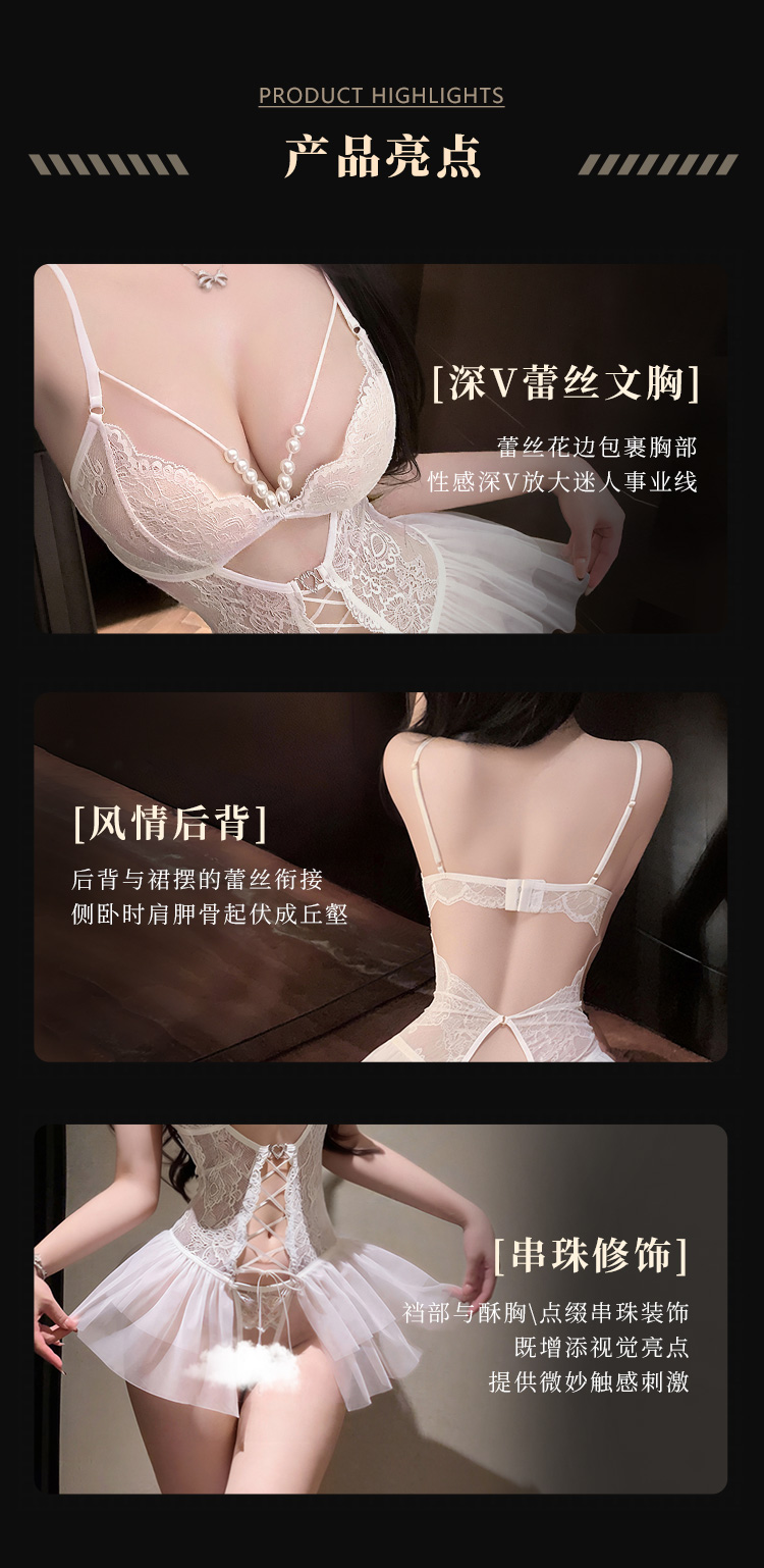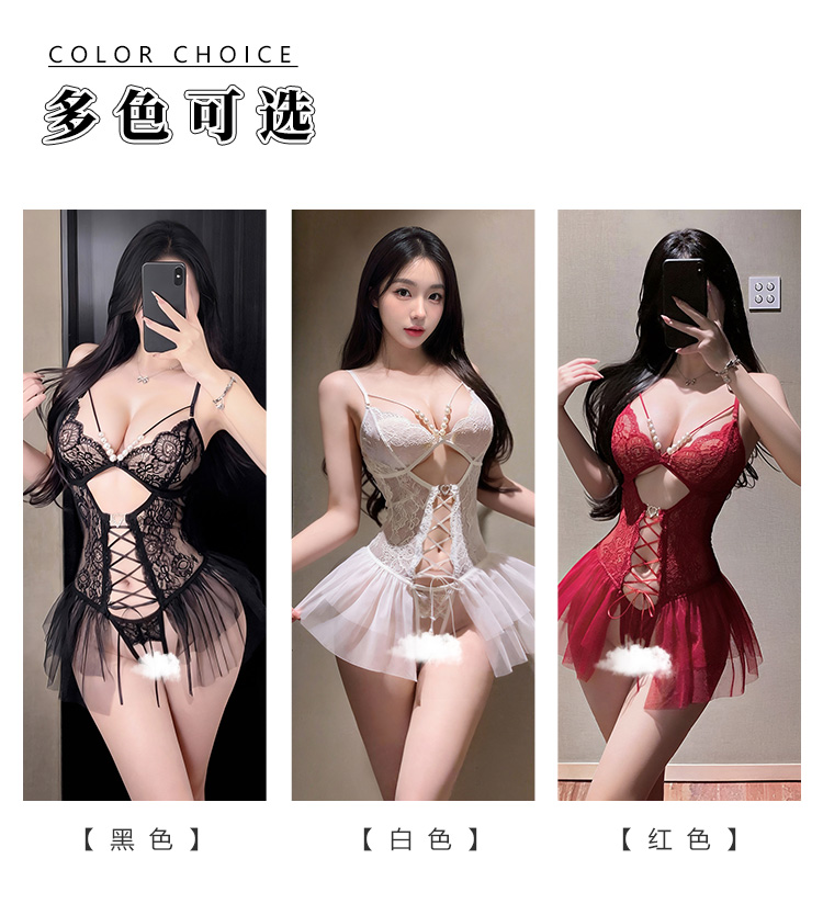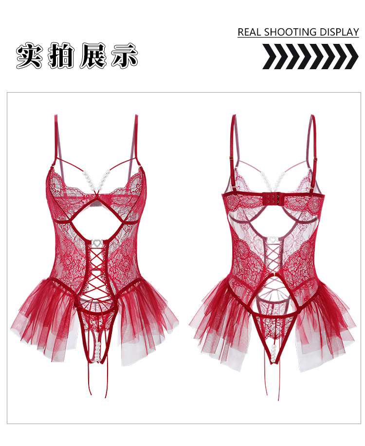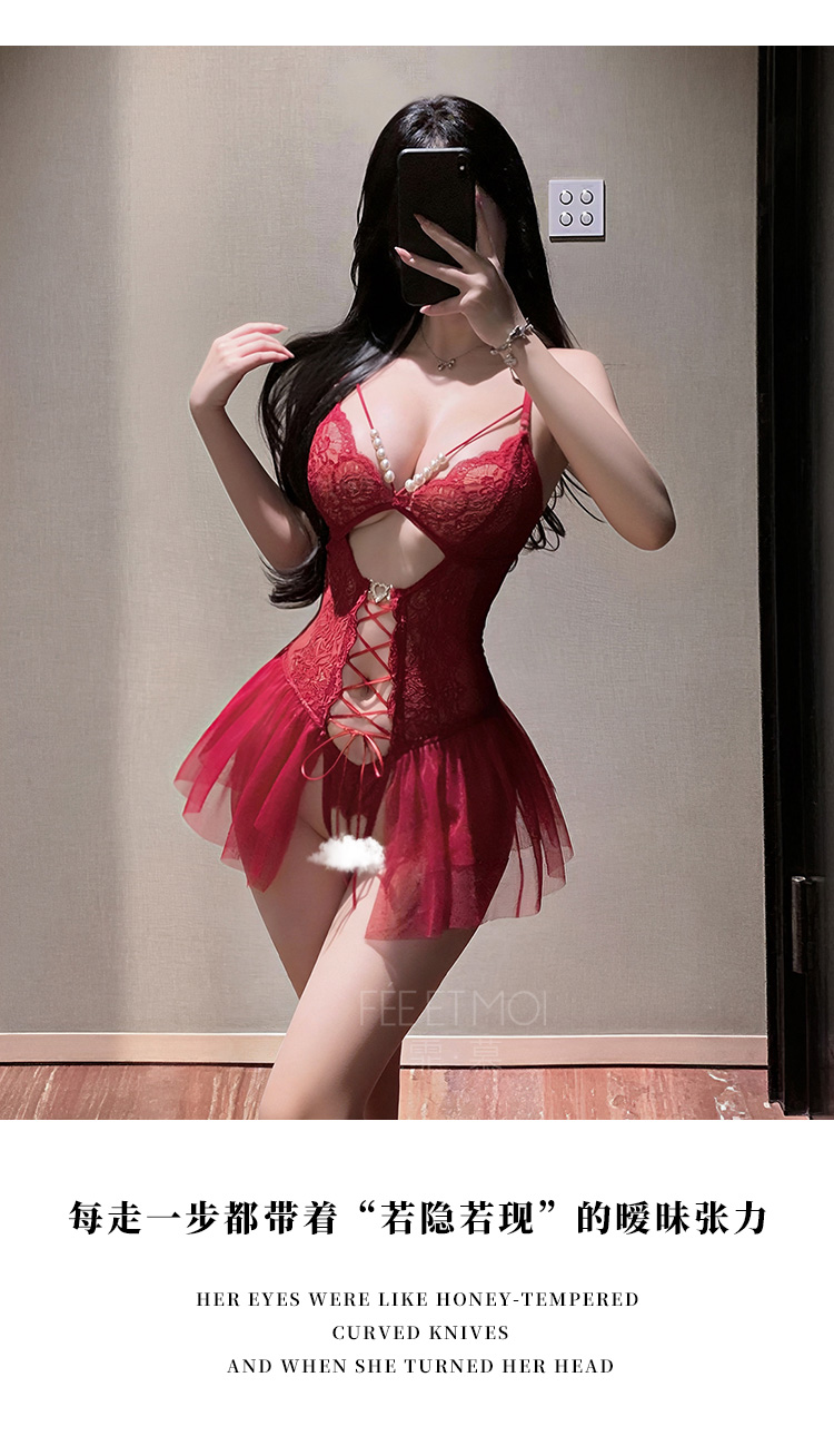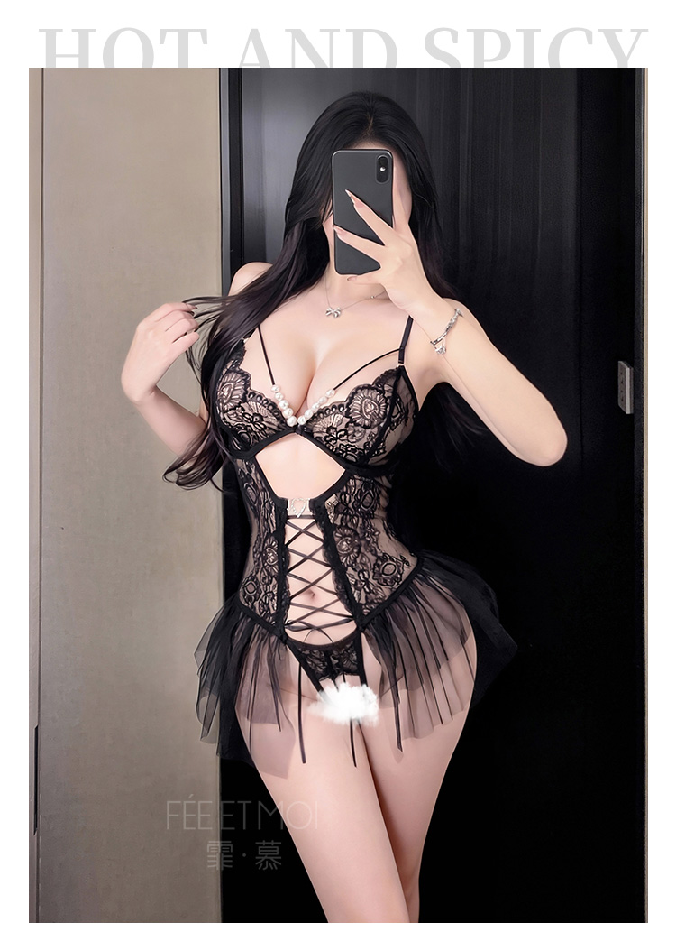 霏慕×谜姬 串珠蕾丝系带连体衣7055
