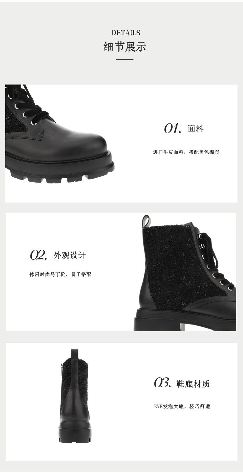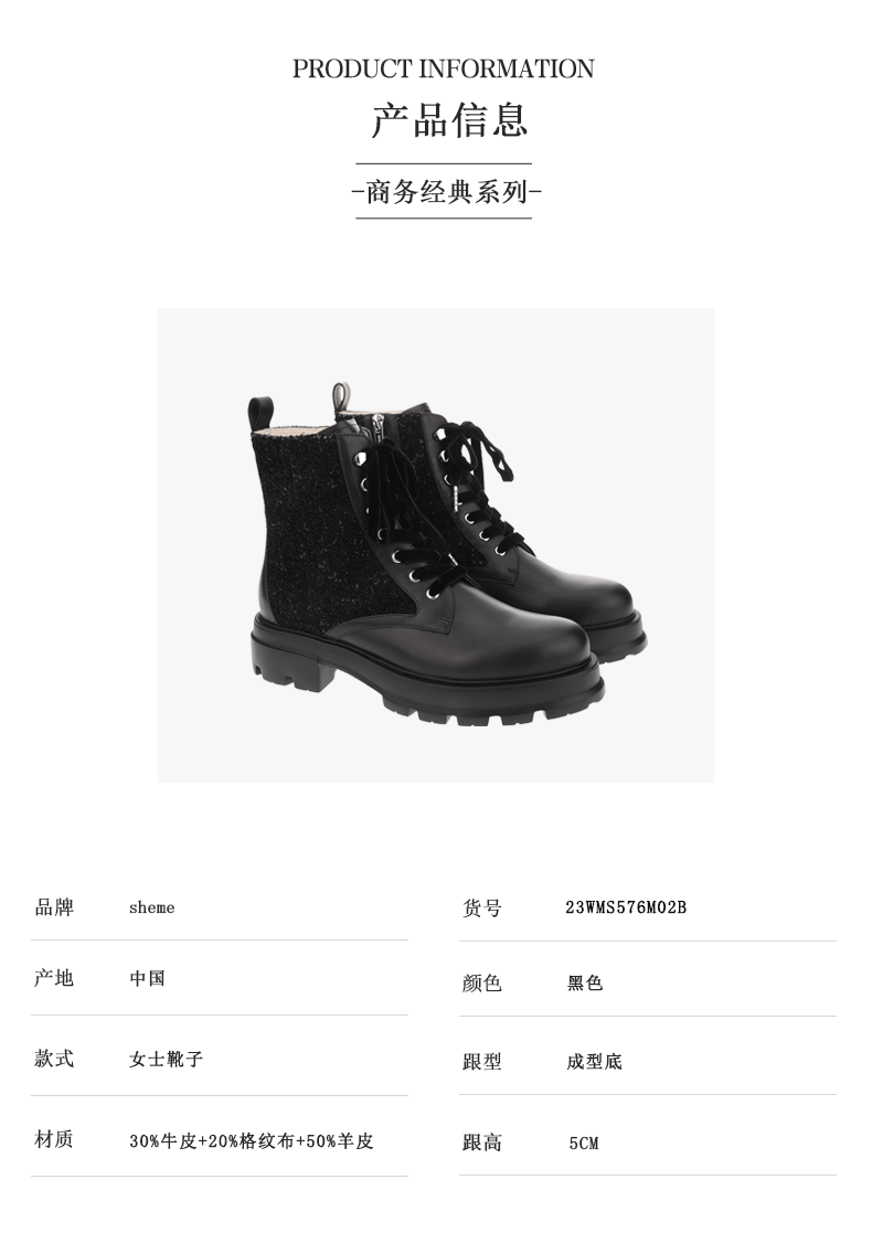 sheme进口牛皮面料休闲时尚女士系带马丁靴可定制