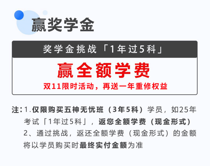 2、限时活动:现购买25年五神无忧班,再送一年,即25考季至28考季均可学习。