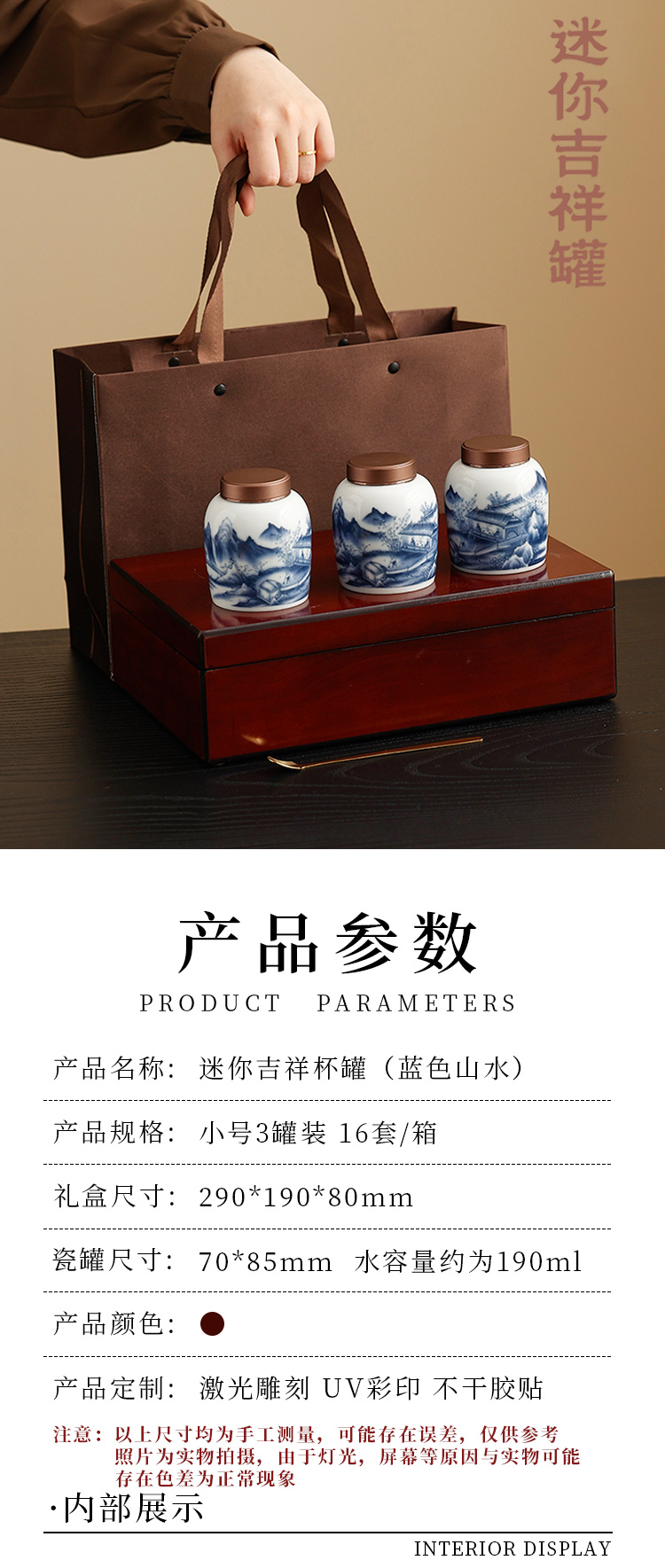 迷你吉祥罐【青花山水 三小瓷 】78元一套/一箱16套