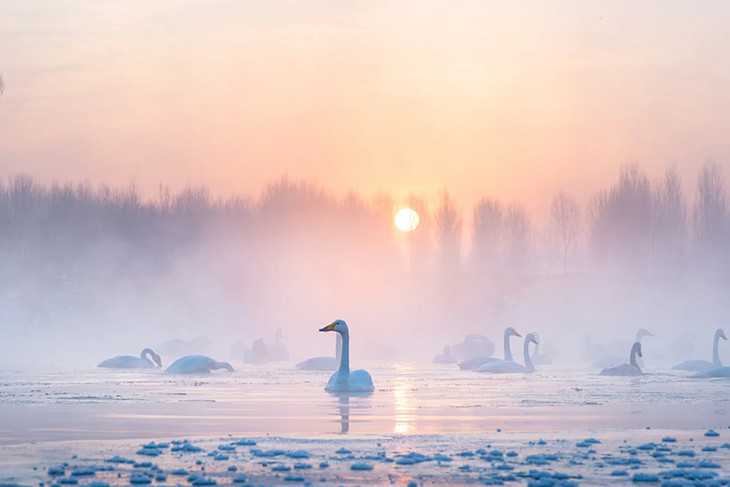 - 早起集合前往『杨柳湾天鹅湖』,这里的日出、天鹅、晨雾非常出片,运气好的话还能欣赏到这里绝美的雾凇美景!