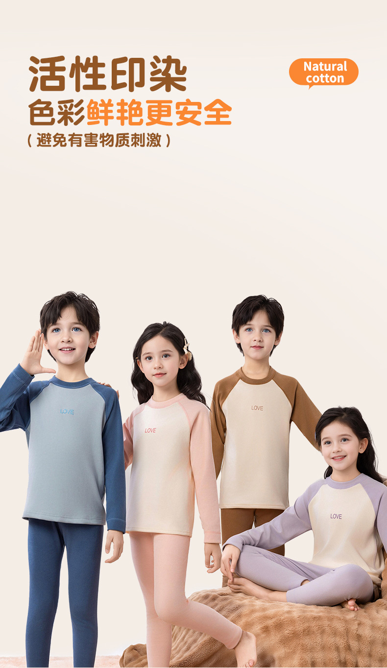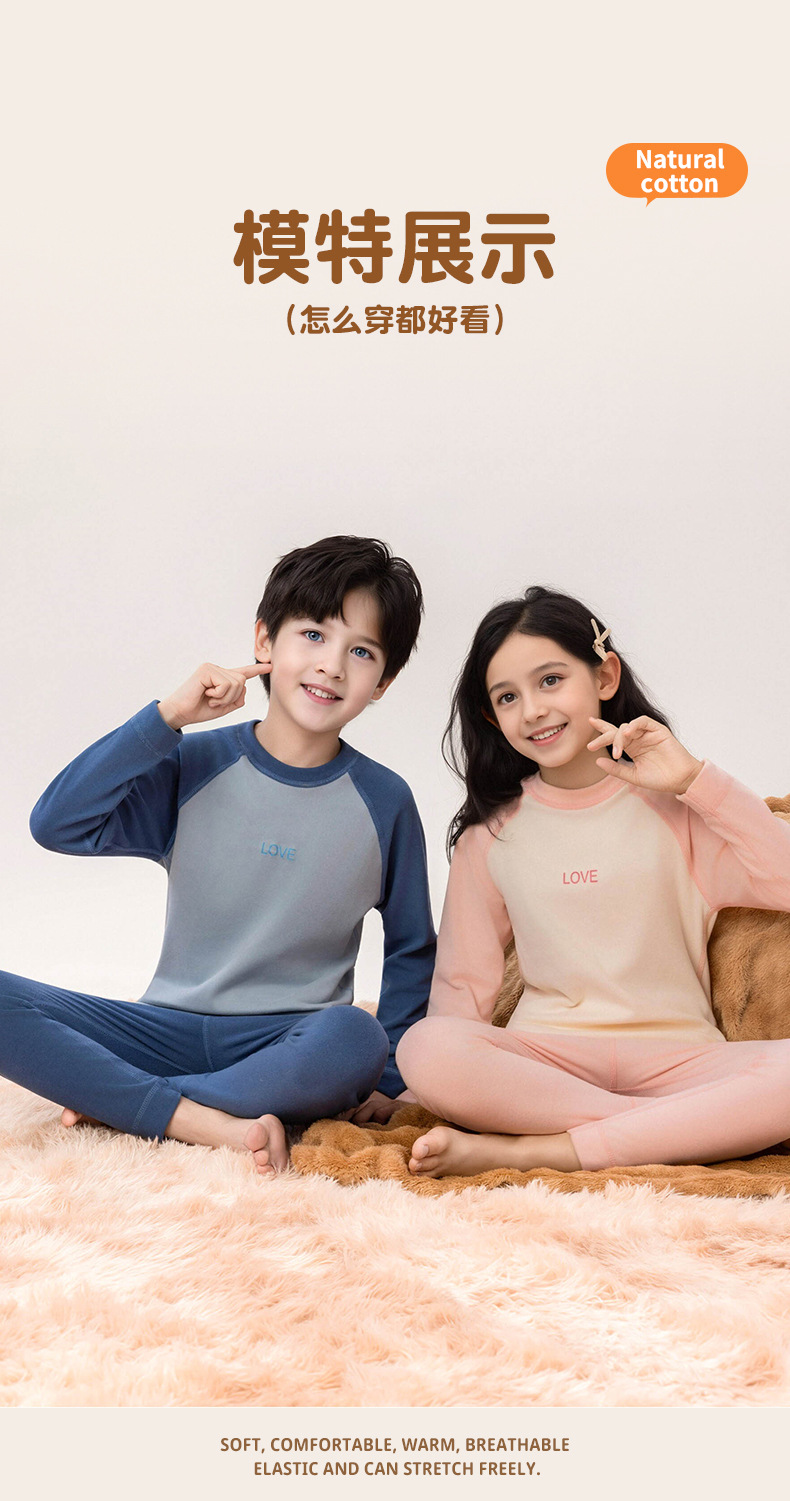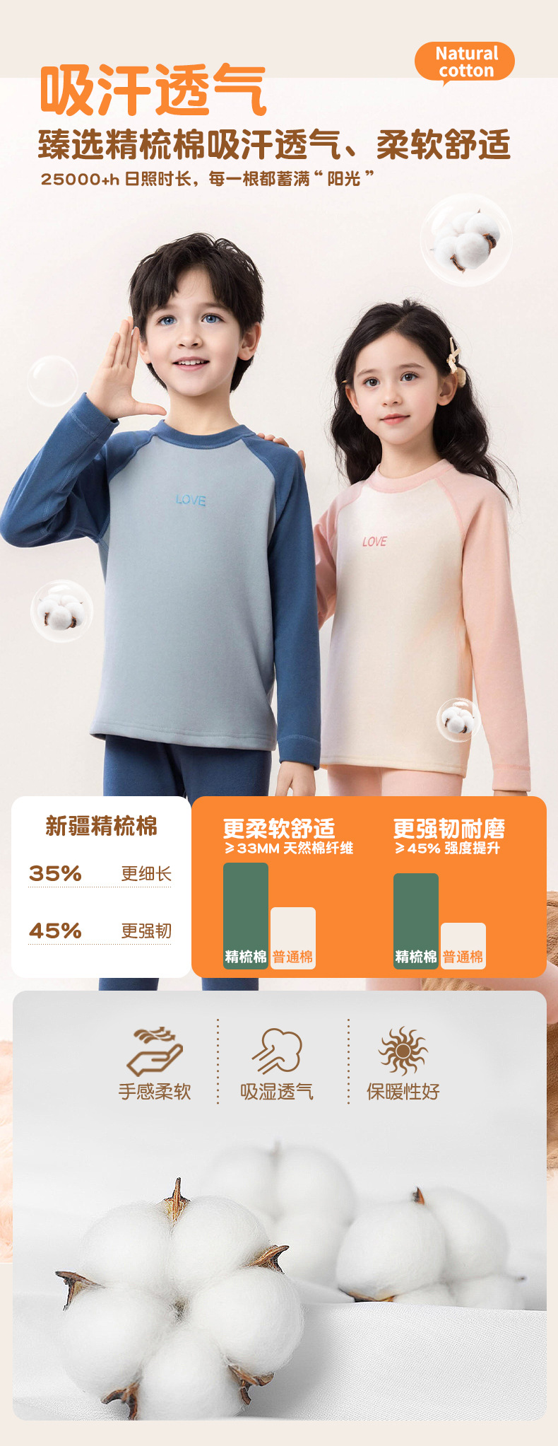 【新疆精梳棉❗️拼接撞色保暖套装】会呼吸的软糯肌肤衣,一穿即执蓄热暖感纤维,柔软O负担,耐磨耐造,中大童加绒加厚秋衣秋裤套装男女童睡衣QQ
