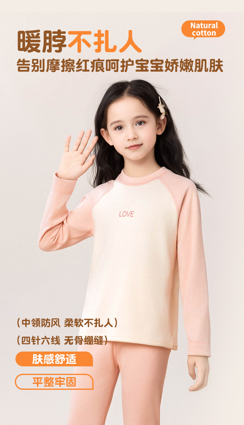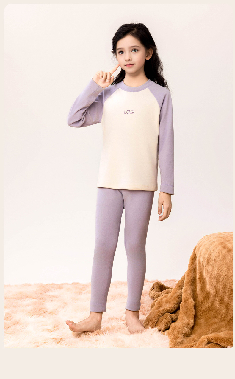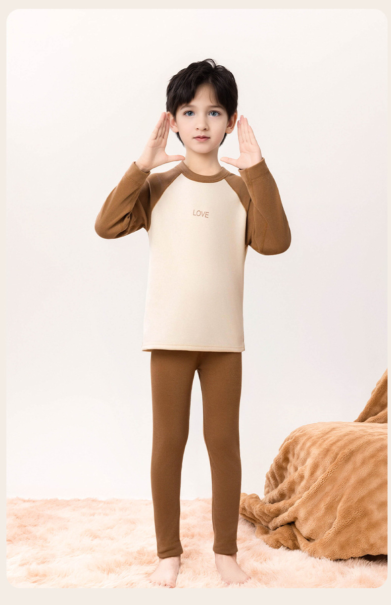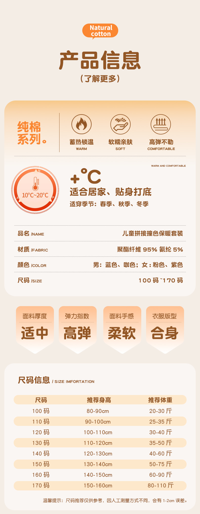 【新疆精梳棉❗️拼接撞色保暖套装】会呼吸的软糯肌肤衣,一穿即执蓄热暖感纤维,柔软O负担,耐磨耐造,中大童加绒加厚秋衣秋裤套装男女童睡衣QQ