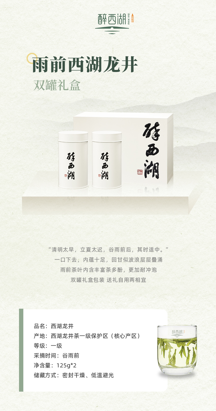 【春茶上新】2025醉西湖 雨前西湖龙井双罐礼盒125g*2