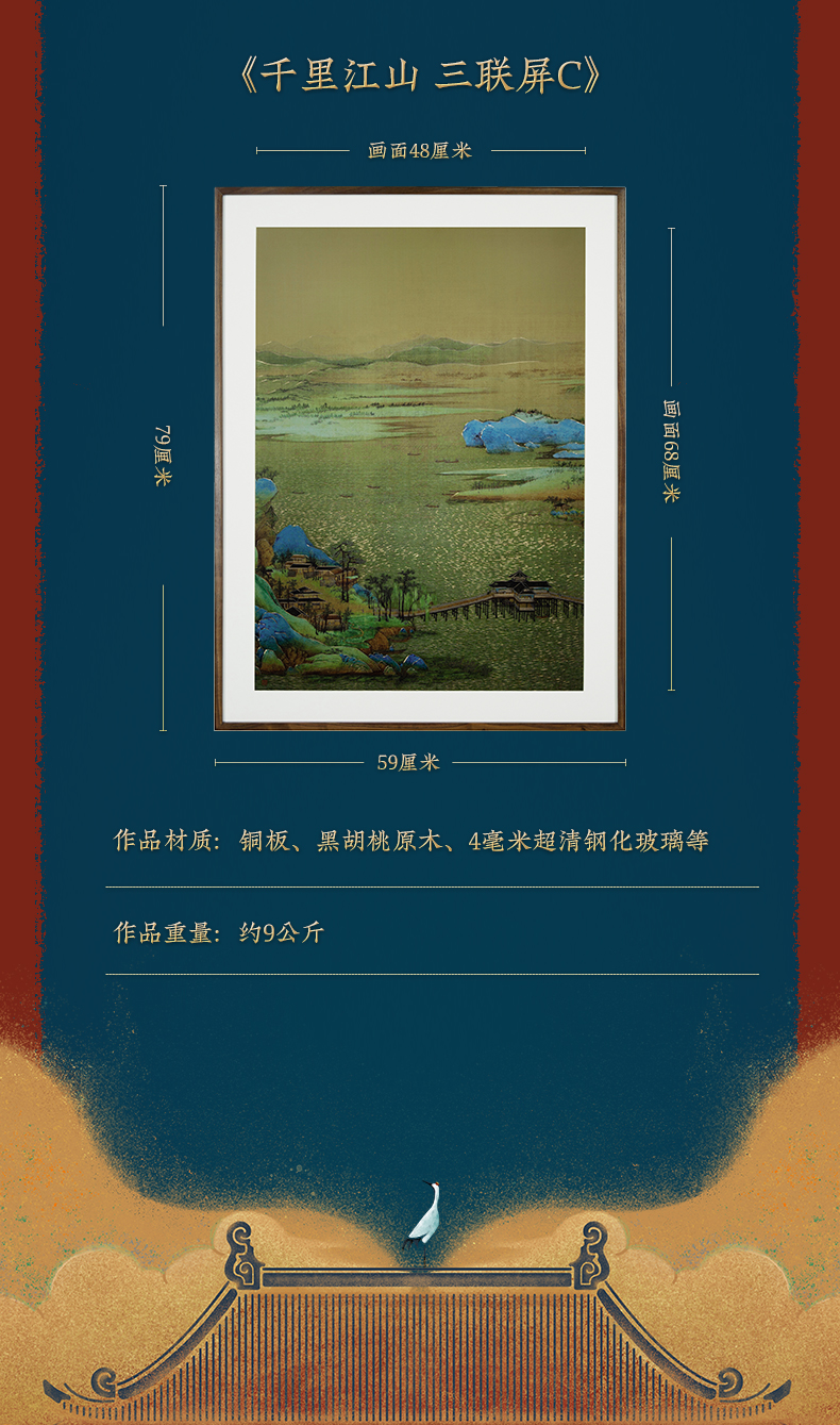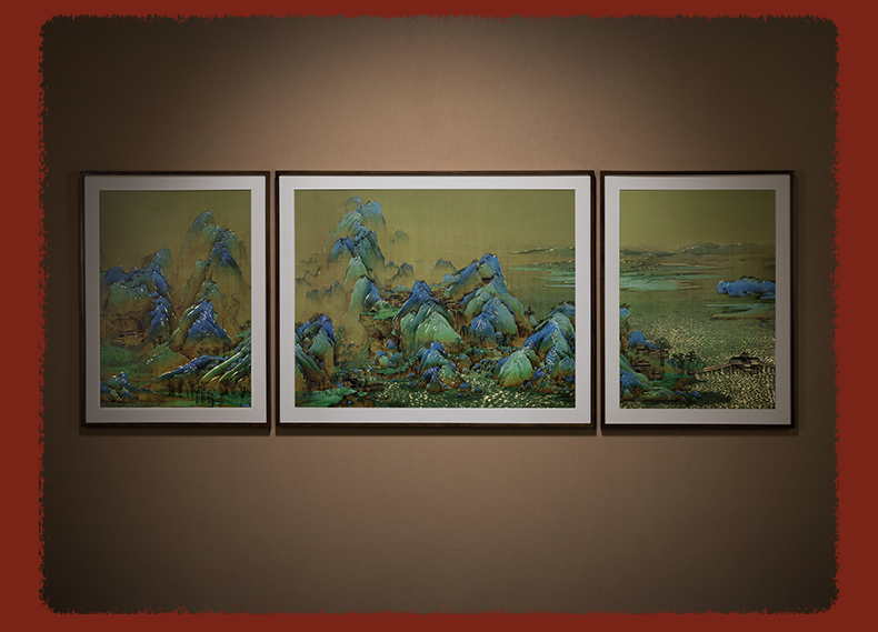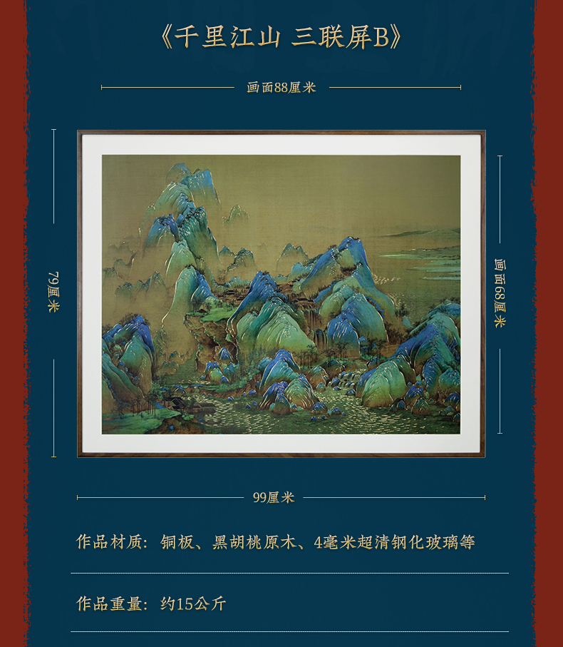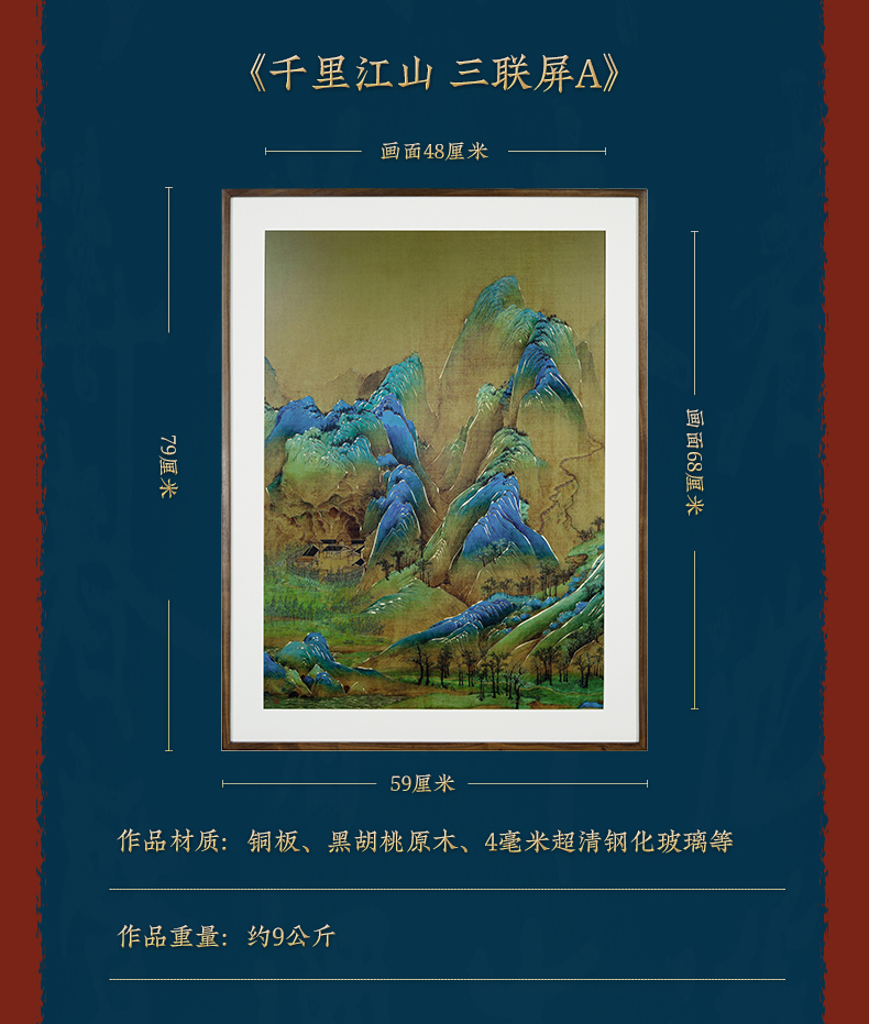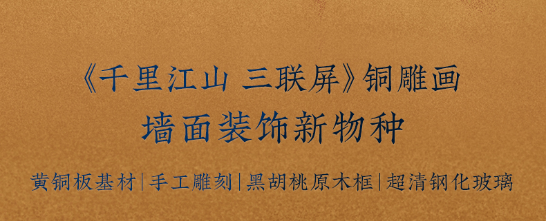 铜师傅 手工錾刻 铜雕画《千里江山 三联屏》客厅背景墙装饰挂画