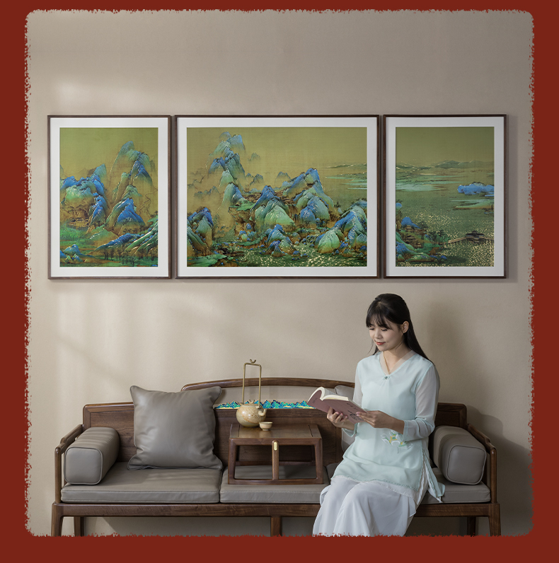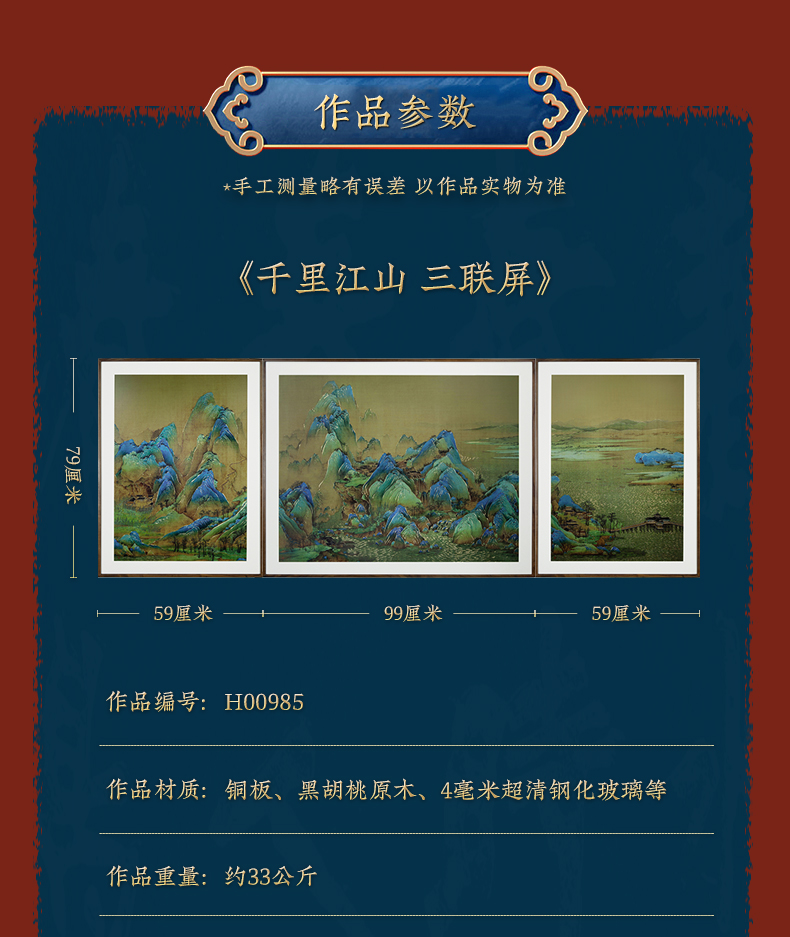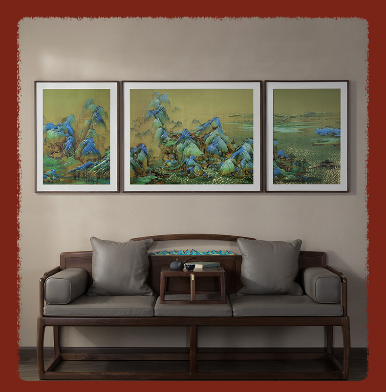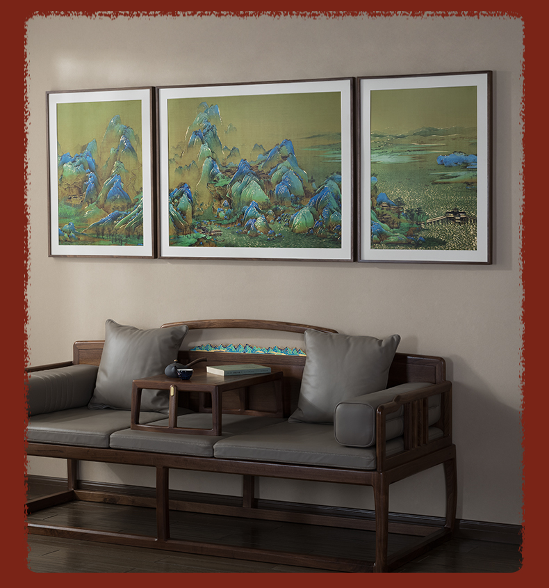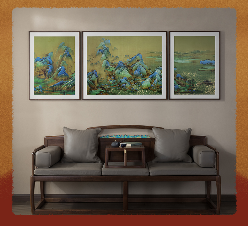 铜师傅 手工錾刻 铜雕画《千里江山 三联屏》客厅背景墙装饰挂画