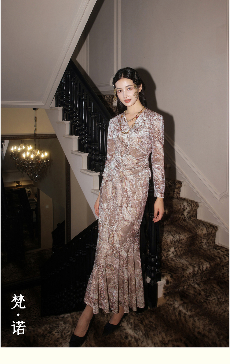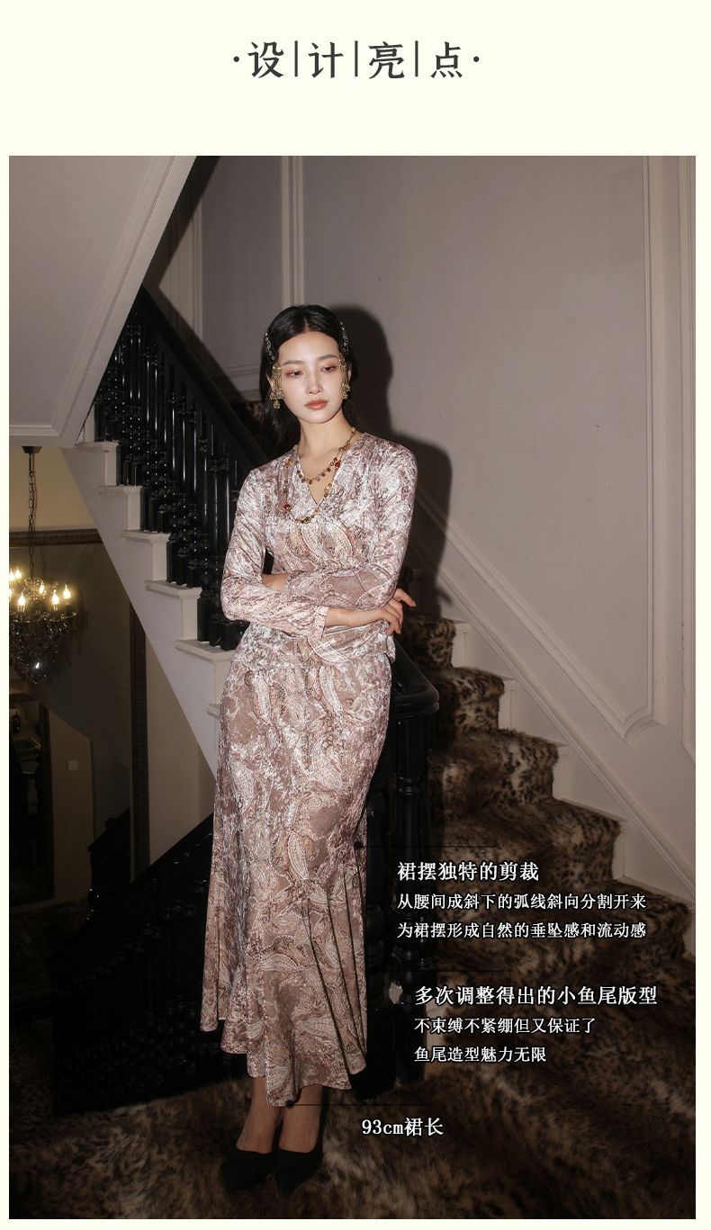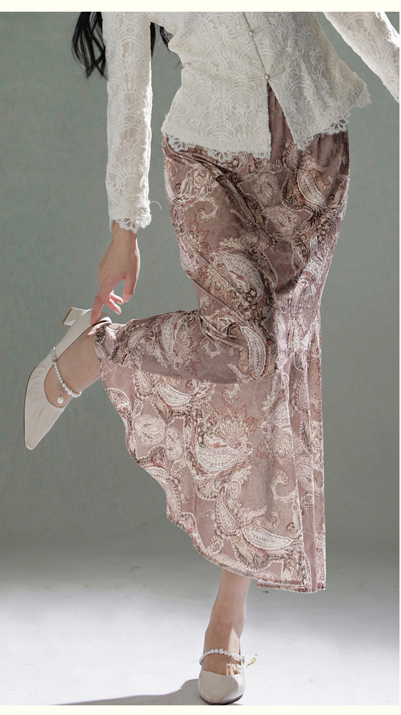 逸红颜梵诺2025秋冬新款高级感宫廷复古弹力丝绒松紧腰鱼尾半裙女