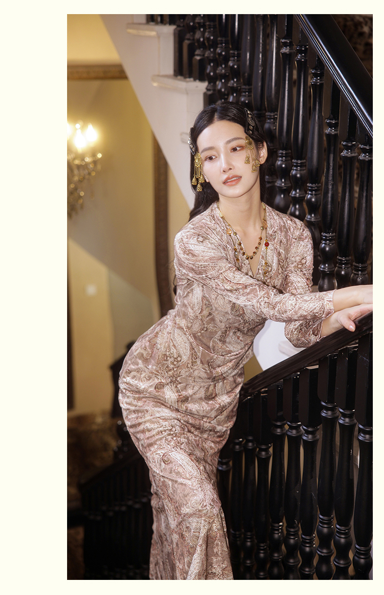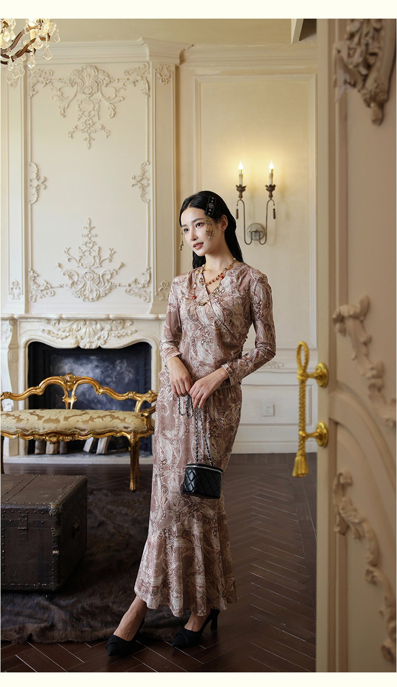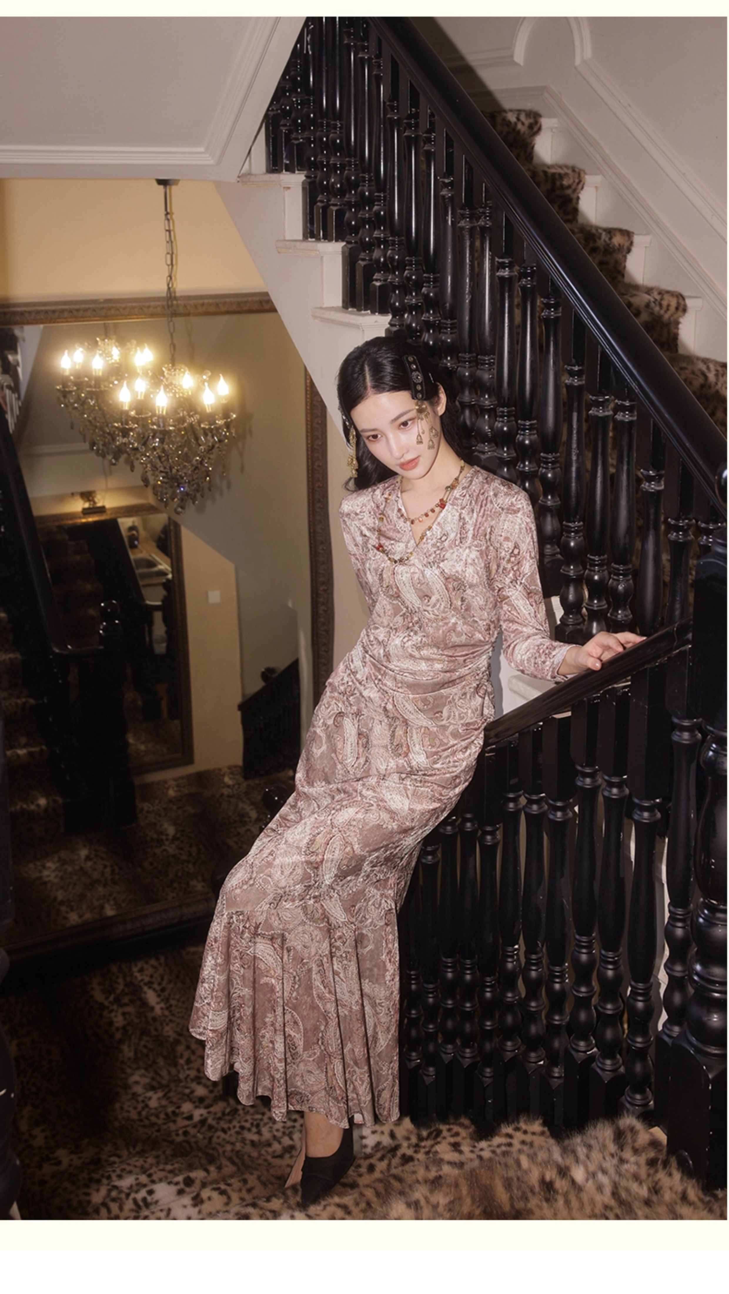 逸红颜梵诺2025秋冬新款高级感宫廷复古弹力丝绒松紧腰鱼尾半裙女